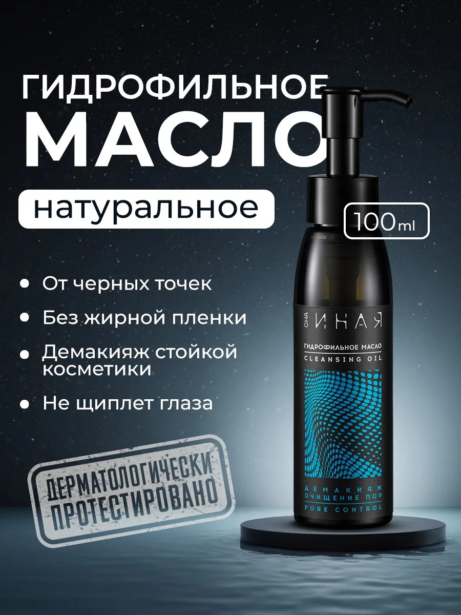 Гидрофильное масло Она Иная удаляет самый стойкий макияж и не нарушает естественный баланс. Подходит для удаления профессионального макияжа. Специально разработанный для стойкого макияжа состав способствует более эффективному очищению и подходит для любого типа кожи.