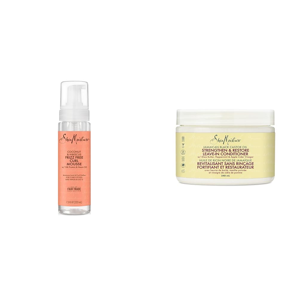 The curl mousse has a capacity of 222 ml, while the leave-in conditioner has a capacity of 340 ml. Both products are made with Certified Organic Shea Butter, are ethically traded, sustainably produced, and cruelty-free, containing no silicones, sulfates, parabens, phthalates, mineral oil, or petrolatum. The curl mousse leaves no sticky, crunchy, or flaky residue, gently detangles, and strengthens curly hair, leaving soft as silk waves and curls, while the leave-in conditioner is perfect for those who regularly color, straighten, perm, or heat style their hair. SheaMoisture Jamaican Black Castor Oil Leave-In Conditioner nourishes, moisturizes, and supports elasticity to resist breakage in dry, chemically processed, heat-styled, kinky, curly, or wavy hair. SheaMoisture Frizz-Free Curl Mousse is a moisture-rich styling mousse that enhances natural curl and wave patterns while reducing frizz, containing Coconut Oil, Neem Oil, and Silk Protein to improve elasticity and shine.