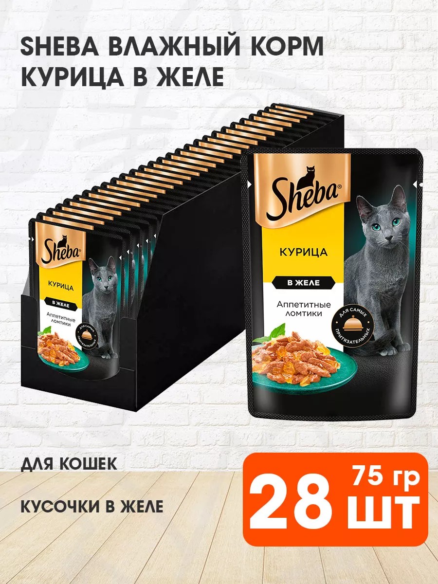 Корм Sheba для кошек влажный. Сочные ломтики с курицей в ароматном желе - кошачий корм из высококачественных ингредиентов, который придётся по вкусу самым притязательным кошкам.