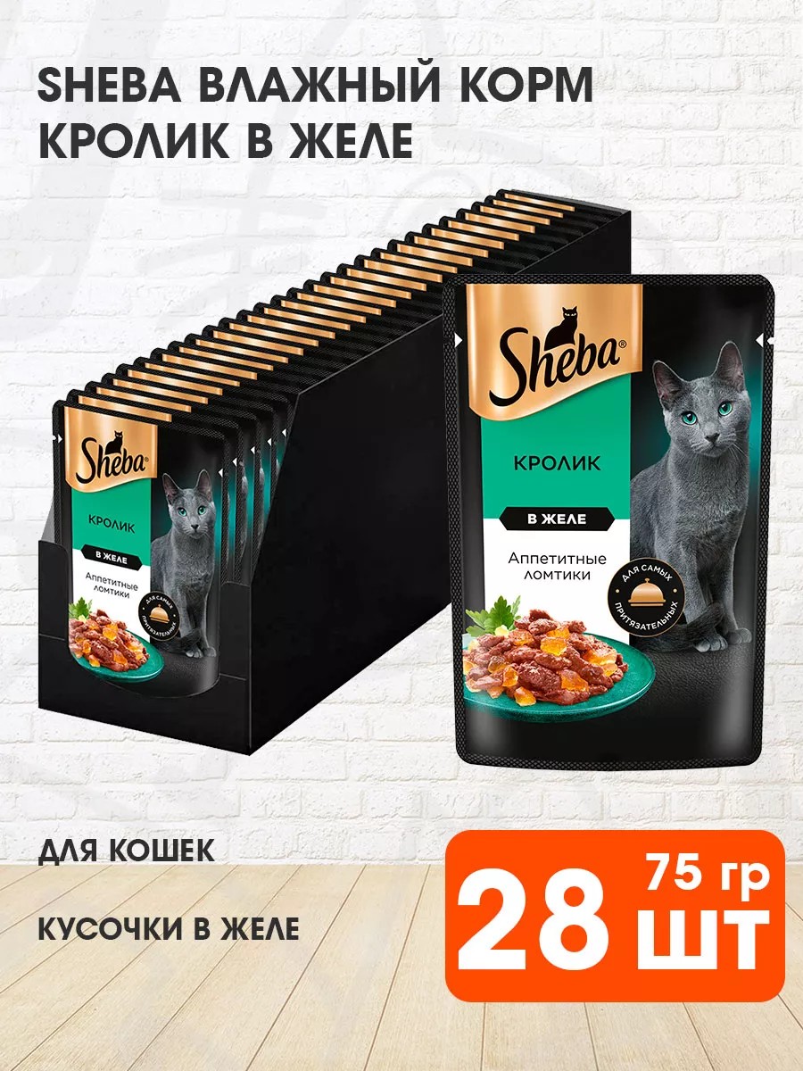 Корм Sheba для кошек влажный. Сочные ломтики с кроликом в ароматном желе - кошачий корм из высококачественных ингредиентов, который придётся по вкусу самым притязательным кошкам.