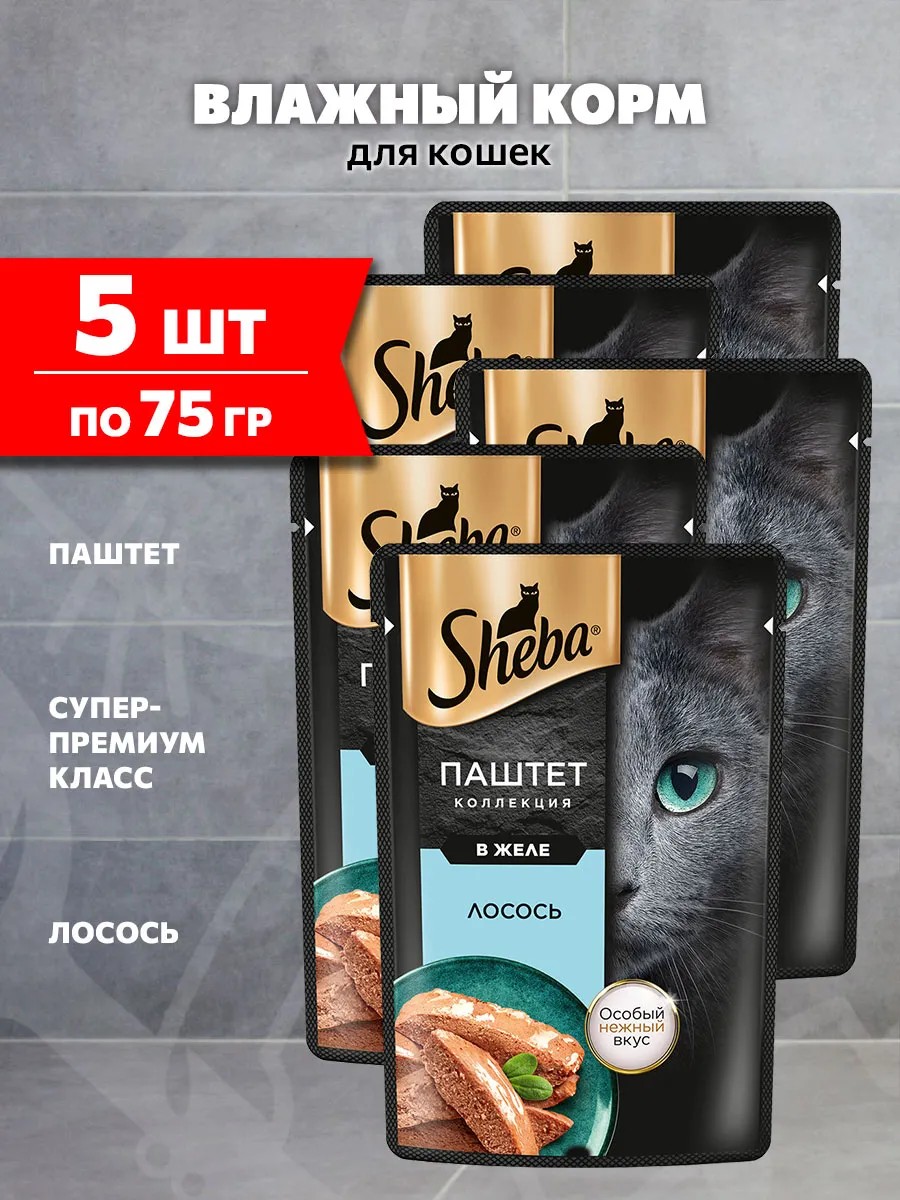 sheba Корм влажный для кошек лосось паштет 75 г 5 шт