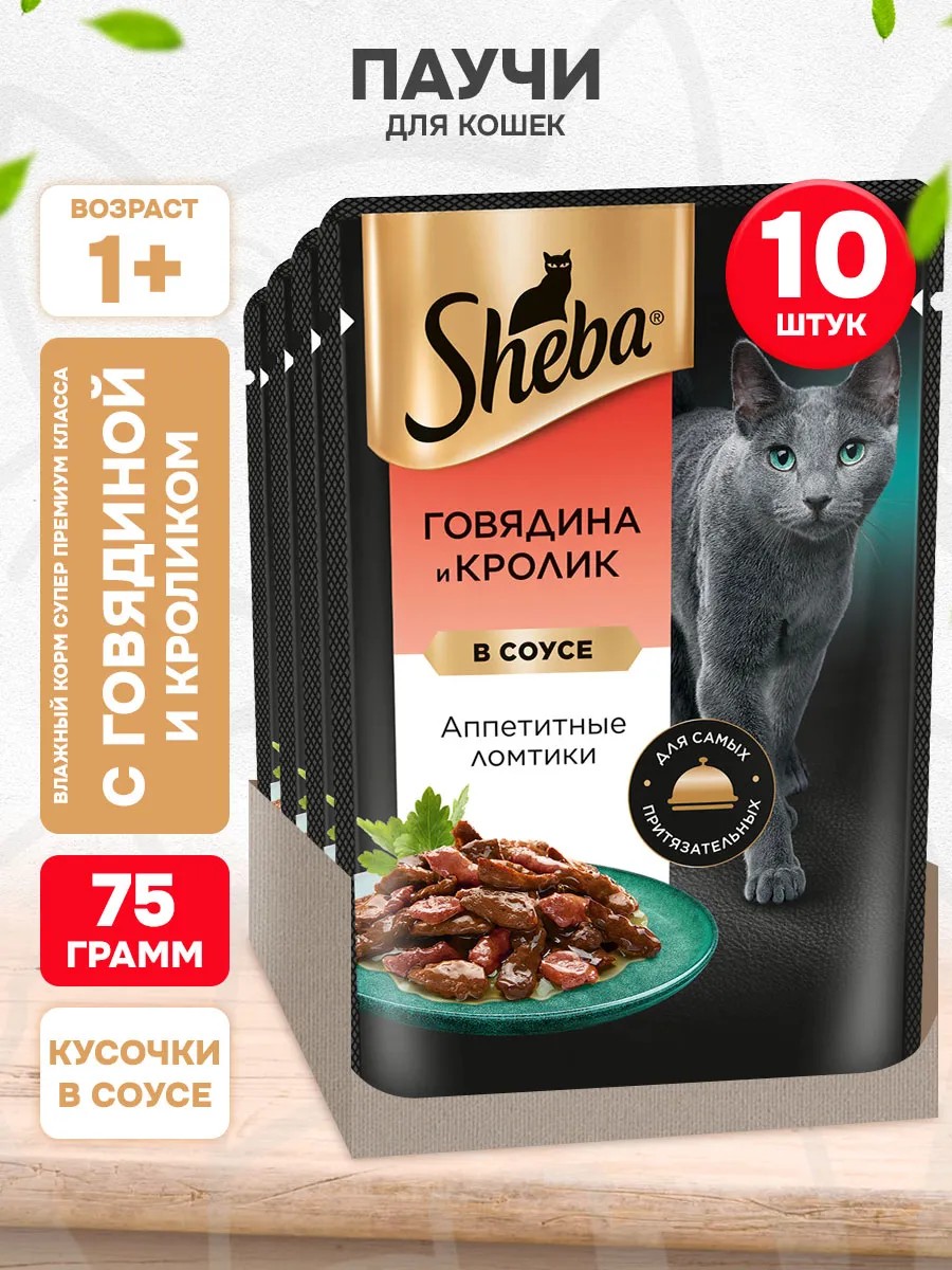 Корм Sheba для кошек влажный. Ломтики с сочной говядиной и нежным кроликом в фирменном соусе – кошачий корм из высококачественных ингредиентов, который придётся по вкусу самым притязательным кошкам.