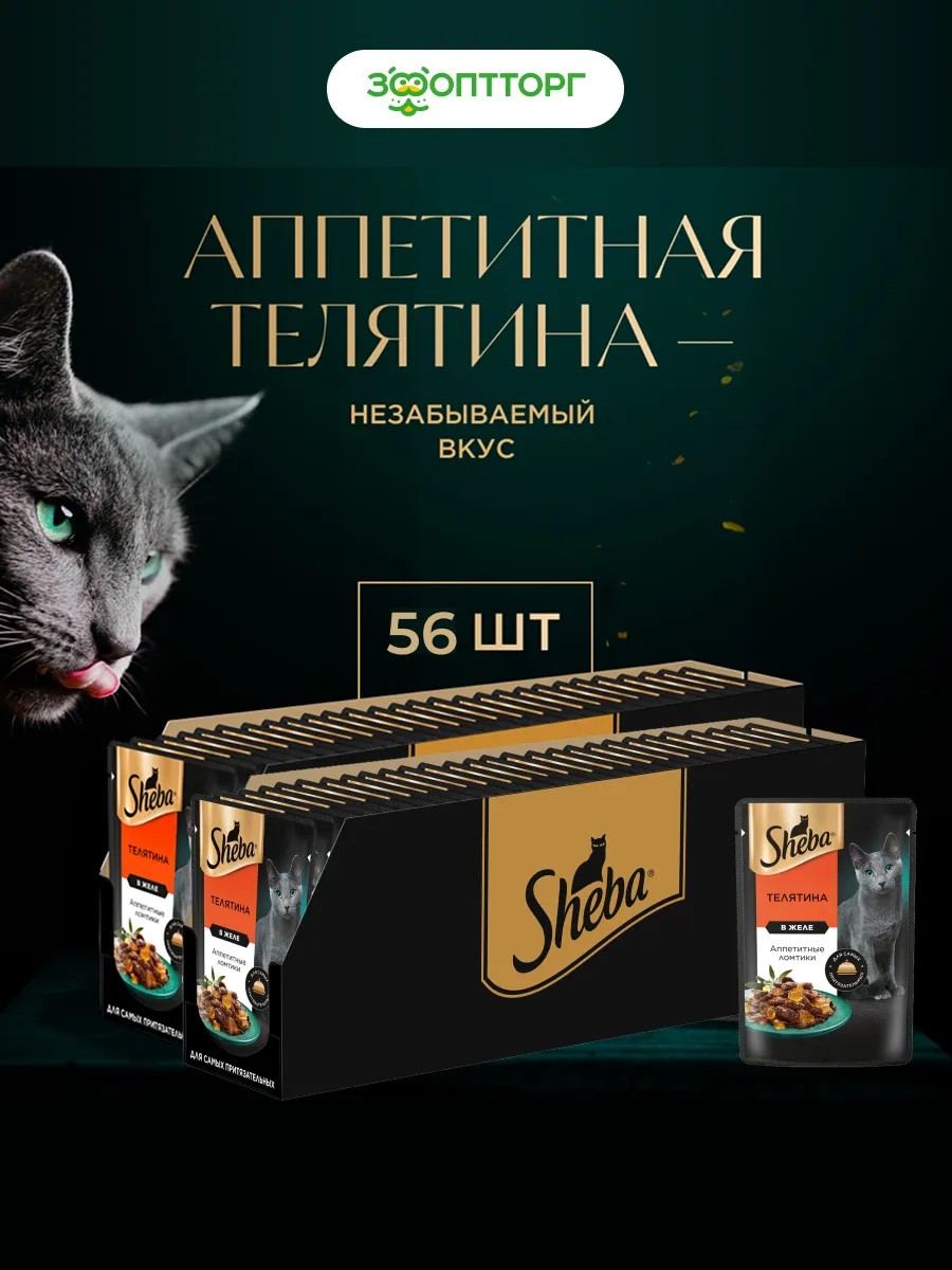 ContentsSheba Veal Slices in Jelly Pouch for Cats, 75 g - 56 pcs.