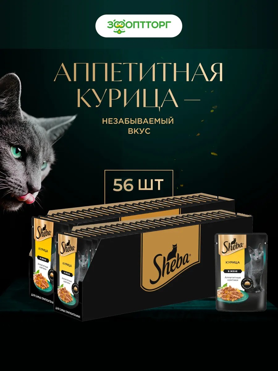 КомплектацияSheba Ломтики в желе пауч для кошек Курица, 75 г - 56 шт.