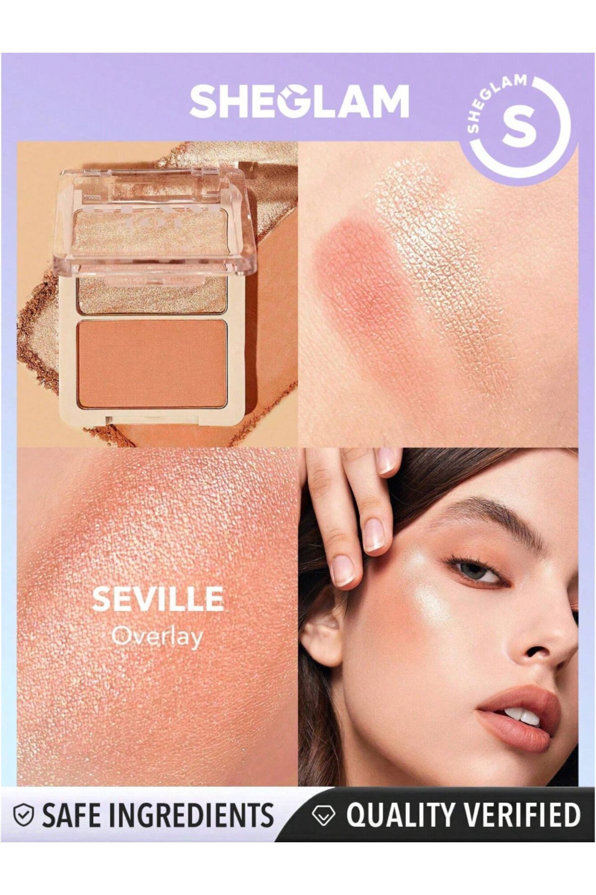 SHEGLAM Glam 101 Hybrid Highlighter & Blush Duo-Seville Blush Highlighter Powder Palette