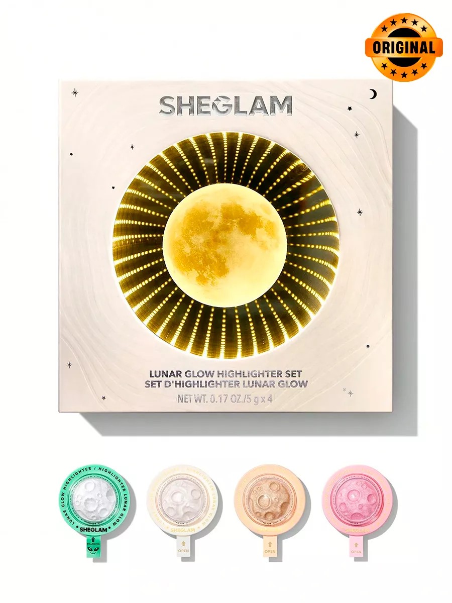 All your highlighter dreams are about to come true. Our Lunar Glow Highlighter Set features four dazzling pressed powder highlighters with a unique reflective sheen.