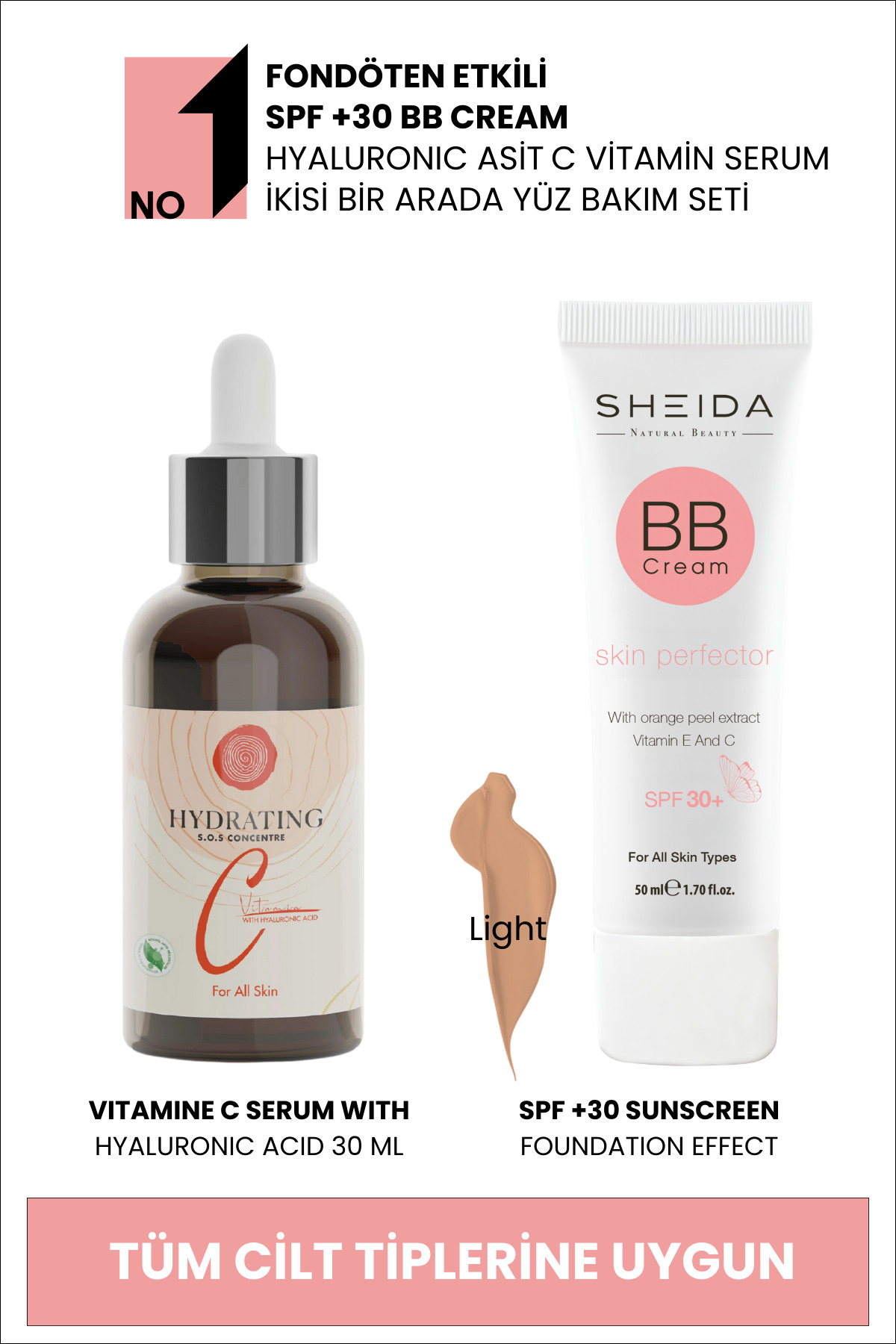 • Uzun Vadeli Bakim:C vitamini serumu, düzenli kullanimda cildinizi daha parlak ve pürüzsüz hale getirirken, BB Cream günlük koruma ve nemlendirme saglar.