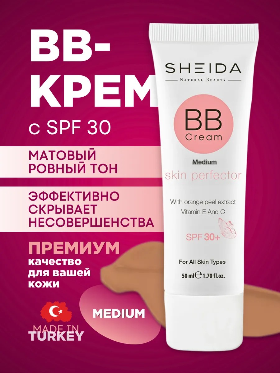 Представляем вам уникальный турецкий косметический продукт - тональный BB-крем для лица солнцезащитный SPF 30, светло коричневый тон 30 от SHEIDA Этот многофункциональный крем сочетает в себе превосходные свойства тонального и увлажняющего средства. BB крем - верное решение для тех, кто хочет иметь идеальный макияж и заботиться о своей коже. bb crem обеспечивает легкое и натуральное покрытие, способное скрыть все недостатки кожи и придать ей ровный и сияющий вид. Солнцезащитный фильтр СПФ 30 обеспечивает надежную защиту от вредных ультрафиолетовых лучей в любое время года, предотвращая преждевременное старение кожи и появление пигментных пятен даже на взрослой возрастной коже. После нанесения крема на коже образуется матовый финиш, и вы будете выглядеть свежей и безупречной весь день. Крем легко наносится, создавая легкий эффект фотошопа. Он контролирует выделение кожного жира, предотвращая появление жирного блеска. Тонирующие пигменты мгновенно подстраиваются и улучшают цвет лица, придавая ему здоровое сияние и photoshopэффект. Увлажняющие и питательные компоненты крема такие как ниацинамид и гиалурон, восстанавливают естественный баланс кожи, делая ее мягкой и увлажненной. bb крем легко наносится и равномерно распределяется по лицу, не забивая поры и не создавая эффекта маски. Идеальное сочетание косметических свойств делает этот тональный BB Cream незаменимым средством для макияжа и ухода за кожей лица. Стоит только попробовать!