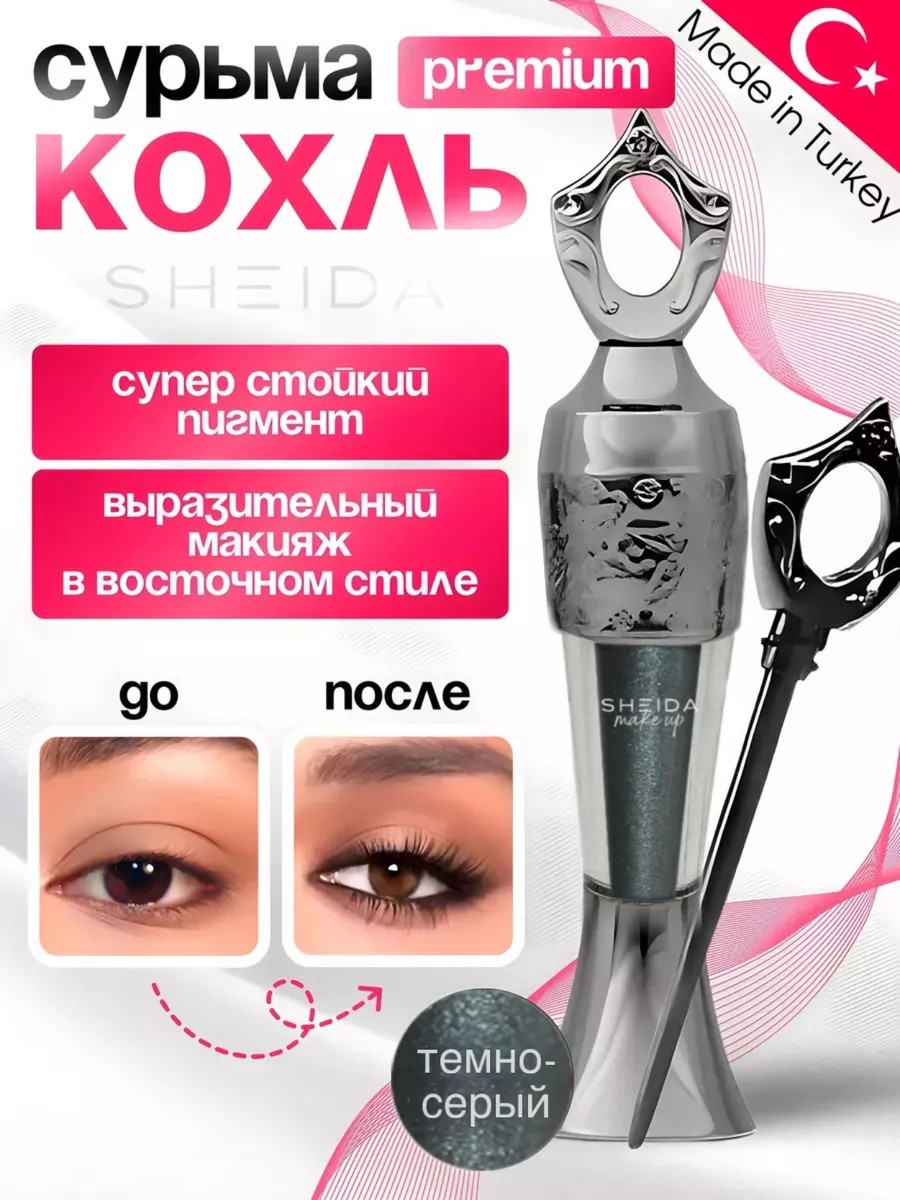 Подводка сурьма кохль для бровей и серая каял для век от SHEIDA - это уникальное косметическое средство, созданное для тех, кто ценит натуральную красоту и стойкий макияж