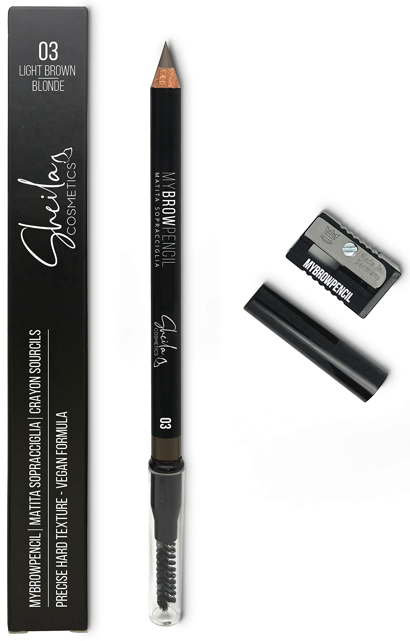 MyBrowPencil is all you need to achieve and show off defined, well-groomed brows. This professional pencil fills, shapes, and defines brows precisely and naturally. The firm tip allows you to control the intensity of the line, filling and defining with extreme precision for a long-lasting, smudge-proof result. The texture doesn't require setting with other products: the rich wax content allows the formula to adhere to the brow hair, pigmenting and shaping it for a defined and neat finish. Available in 3 color variations. Sharpener included. Dermatologically tested. PAO: 24 m INGREDIENTS C10-18 Triglycerides, Cerifera Cera (Carnauba Wax), Polyethylene, Microcrystalline Wax, Polyglyceryl-2 Oleate, Caprylyl Glycol, CI 77891, CI 77492, CI 77499, CI 77491 INSTRUCTIONS 1. Fills 2. Draws 3. Defines the eyebrows 4. Use the mascara wand to comb and shape the eyebrows 5. Sharpen the pencil before use SAFETY WARNING It is recommended to tightly close the cap after each use to properly preserve the effectiveness of the product. See morePencil sharpener included. The convenient brush integrated into the base of the pencil allows for perfect combing and shaping of the eyebrows. The rich wax content allows the formula to bond with the eyebrow hairs, pigmenting and shaping them for a precise and groomed result. The rigid handle allows for adjustable application and ensures a defined, long-lasting, and smudge-proof line. Professional pencil with a rigid formula: fills, shapes, and defines eyebrows for a precise and natural finish.Sheila Cosmetics My Brow Crayon à sourcils avec formule rigide longue tenue Made in Italy (03 Light Brown Blonde) 03 Blondes et châtaines clairesDESCRIPTION DU PRODUIT DESCRIPTION DU PRODUIT MyBrowPencil est tout ce qu'il faut pour avoir et montrer des sourcils définis et bien soignés. C'est un crayon professionnel qui remplit, dessine et définit les sourcils de manière précise et naturelle. La pointe rigide permet de moduler l'intensité du trait, remplit et définit avec une extrême précision pour un résultat durable et sans bavure. La texture ne nécessite pas d'être fixée avec d'autres produits : la riche présence de cires permet à la formule d'adhérer au poil sourcils, de le pigmenter et de le modeler pour une finition définie et ordonnée. Disponible en 3 variantes de couleur. Taille-crayon inclus. Testé sous contrôle dermatologique. PAO : 24 m INGRÉDIENTS C10-18 Triglycerides, Couvernicia Cerifera Cire, Polyéthylène, Cire Microcristalline, Polyglycéryl-2 Oleate, Caprylyl Glycol, CI 77891, CI 77492, CI 77499, CI 77491 MODE D'EMPLOI 1. Remplit (Fills) 2. Dessinez (Draws) 3. Définit les sourcils (Defines the eyebrows) 4. Utilisez la brossette pour peigner et modeler les sourcils (Use the mascara wand to comb and model the eyebrows) 5. Aiguiser le crayon avant utilisation (Sharpen the pencil before use) AVERTISSEMENT DE SÉCURITÉ Il est recommandé de fermer soigneusement le bouchon après chaque utilisation pour préserver correctement l'efficacité de la texture Voir plusTaille-crayon inclus. La brosse pratique intégrée au fond du crayon, permet de peigner et façonner parfaitement les sourcils. La riche présence de cires permet à la texture de se lier au poil sourcils, de le pigmenter et de le modeler pour un résultat précis et ordonné. La poign e rigide permet une application modulable et assure un trait défini, durable et sans bavure. Crayon professionnel avec formule rigide : remplit, dessine et définit les sourcils pour une finition précise et naturelle.