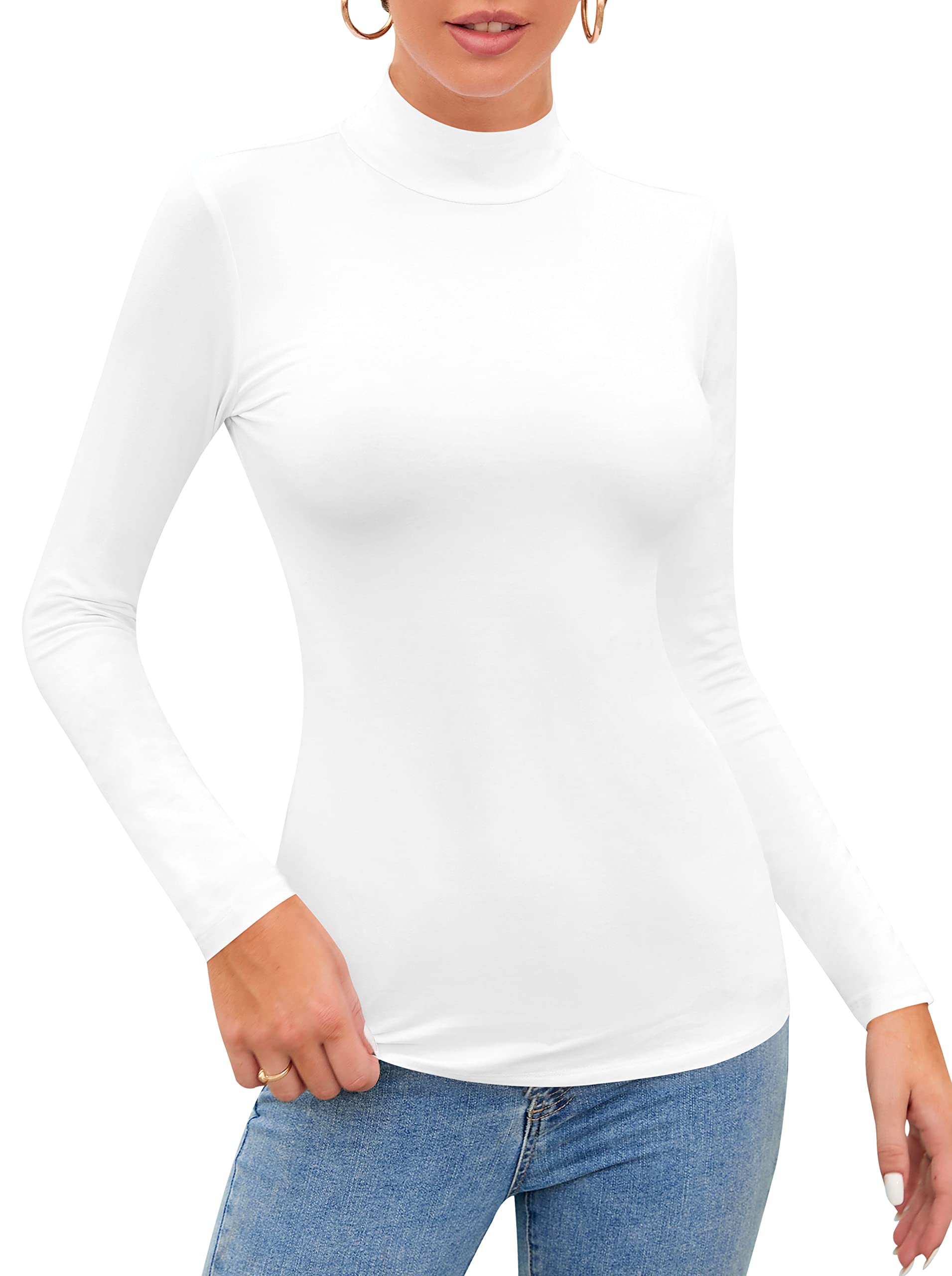 Women's Long Sleeve Mock Turtle Neck Tops Basic Stretchy Fitted Underwear Layer Tee Shirts