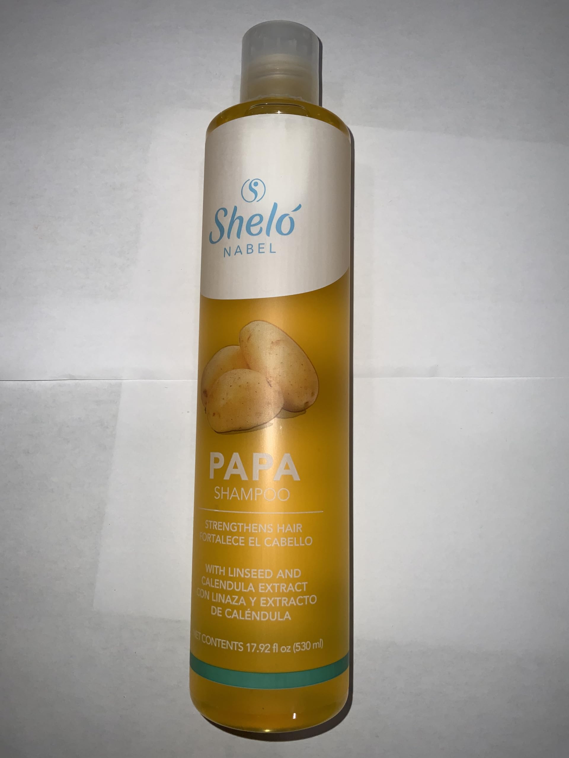 shampoo de papa ?? of Shelo Nabel acts effectively if you seek to make the hair grow faster, as well as to moisturize the scalp, fight the fungi that cause dandruff, regulate the pH and promote deep cleaning in the scalp. This product also provides extra shine to all your hair, rdelays the appearance of gray hair and nourishes and restores damaged hair and split ends. ✓? Delays the appearance of gray hair. ✓? Improve mistreated hair and restore split ends. ✓? Protects hair from breakage and nourishes the scalp. ✓? Helps stop hair loss due to weakness and provides nutrients that strengthen the follicle and hair fiber. ?? Apply a generous amount of shampoo to wet hair from the root, giving a light massage, rinse and repeat the operation to ensure penetration and let act for 2 minutes. For deep action. Purified spring water, coco glucoside, cocamidopropyl betaine, potato extract, calendula, flaxseed, vitamin B, C, cocamide DEA, preservatives, citric acid, methylchloroisothiazolinone, fragrance and color. ✓ Made in Mexico for Shelo Nabel ✓ Net Cont.: 530ml.