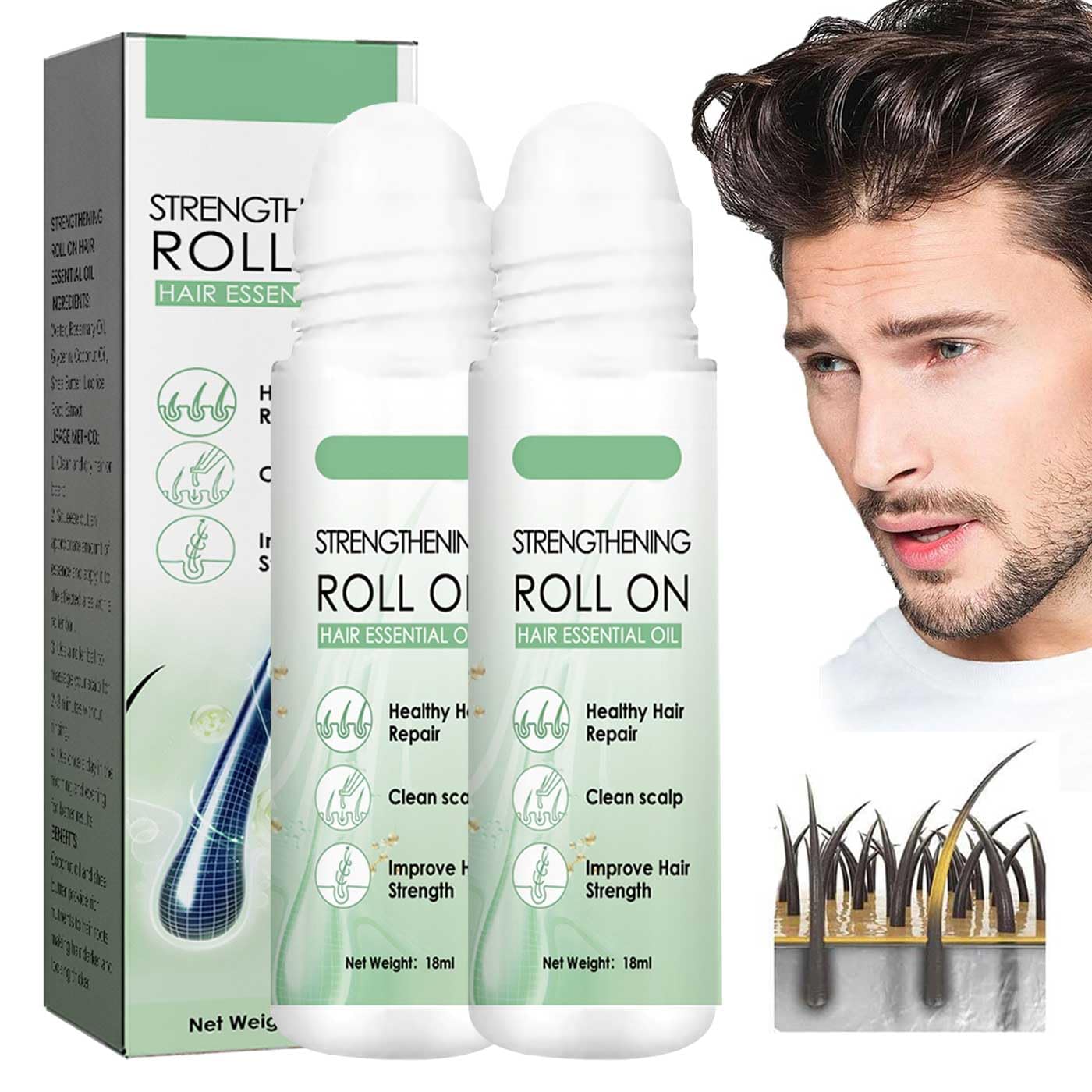Features: - Help Nourish Hair from Root to Tip. - Help Stimulate Hair Growth, Thickening, and Lengthening. - Nourish the Scalp, Prevent Shedding. - Reduce Dry, Frizzy Hair, Repairs Split Ends. - Encourages Thicker, Healthier Hair. - Works On All Hair Types. How To Use: Roll on the affected area after washing once a day. Since you're focusing application on the scalp, it can be used when hair is dry or when hair is damp and towel-dried after a shower. We recommend before bed to leave in overnight. Specification: Product Name: Renew Hair X Roll-On Hair Treatment Capacity: 18ml Ingredients: water, glycerin, rosemary oil, coconut oil, etc. Shelf life: three years Efficacy: moisturizing nutrition, strong hair, anti-hair loss, hair growth Gross weight: 40g Size: 2.4 10cm Package Includes: 2pcs Renew Hair X Roll-On Hair Matters Needing Attention: 1.Due to different shooting angles or light, there will be errors in color. 2.There may be 1-3cm error due to manual measurement.Keep Scalp Balanced ----- Renew Hair X Roll-On Hair is benefit for the hair and maintains the natural balance of the scalp, improves circulation to the scalp, and relieves dandruff flaking and excess sebum production, providing much-needed conditioning, smoothness and natural shine to the scalp and hair without making it heavy or greasy. Natural Ingredients ----- Made with natural ingredients to provide nutrients to hair roots, repair damaged hair and rejuvenate hair, suitable for all hair types, ideal for those who want to prevent hair loss and promote new thick hair growth. Promoting Hair Growth ----- Renew Hair X Roll-On Hair helps promote hair growth for men and women. Other key ingredients, help strengthen the structures surrounding hair follicles and promotes hair pigmentation, makes your hair appear fuller, darker and shinier. Improve Hair Loss ----- Renewhair X Roller Thick Hair Essential Oil can increases nutrient absorption and hair shine. The essential oil penetrates into the hair roots, smoothing and improving hair loss. Great for dull, frizzy, dry and various other hair conditions. Renew Hair X Roll-On Hair ----- The Renew Hair X Roll-On Hair protects and nourishes hair and reduces further hair loss and broken hair. It Rejuvenates The rejuvenates the scalp and hair follicles, and promotes new thick hair growth.Renewhairx - Renew Hair X Roll-On Hair,Hair and Beard Regrowth,Roll-On Hair Growth Oil,Hair Growth Serum,Anti-Hair Loss Essential Oil,Hair and Beard Regrowth Roll On Serum for Women Men Features: - Help Nourish Hair from Root to Tip. - Help Stimulate Hair Growth, Thickening, and Lengthening. - Nourish the Scalp, Prevent Shedding. - Reduce Dry, Frizzy Hair, Repairs Split Ends. - Encourages Thicker, Healthier Hair. - Works On All Hair Types. How To Use: Roll on the affected area after washing once a day. Since you're focusing application on the scalp, it can be used when hair is dry or when hair is damp and towel-dried after a shower. We recommend before bed to leave in overnight. Specification: Product Name: Renew Hair X Roll-On Hair Treatment Capacity: 18ml Ingredients: water, glycerin, rosemary oil, coconut oil, etc. Shelf life: three years Efficacy: moisturizing nutrition, strong hair, anti-hair loss, hair growth Gross weight: 40g Size: 2.4 10cm Package Includes: 2pcs Renew Hair X Roll-On Hair Matters Needing Attention: 1.Due to different shooting angles or light, there will be errors in color. 2.There may be 1-3cm error due to manual measurement.Keep Scalp Balanced ----- Renew Hair X Roll-On Hair is benefit for the hair and maintains the natural balance of the scalp, improves circulation to the scalp, and relieves dandruff flaking and excess sebum production, providing much-needed conditioning, smoothness and natural shine to the scalp and hair without making it heavy or greasy. Natural Ingredients ----- Made with natural ingredients to provide nutrients to hair roots, repair damaged hair and rejuvenate hair, suitable for all hair types, ideal for those who want to prevent hair loss and promote new thick hair growth. Promoting Hair Growth ----- Renew Hair X Roll-On Hair helps promote hair growth for men and women. Other key ingredients, help strengthen the structures surrounding hair follicles and promotes hair pigmentation, makes your hair appear fuller, darker and shinier. Improve Hair Loss ----- Renewhair X Roller Thick Hair Essential Oil can increases nutrient absorption and hair shine. The essential oil penetrates into the hair roots, smoothing and improving hair loss. Great for dull, frizzy, dry and various other hair conditions. Renew Hair X Roll-On Hair ----- The Renew Hair X Roll-On Hair protects and nourishes hair and reduces further hair loss and broken hair. It Rejuvenates The rejuvenates the scalp and hair follicles, and promotes new thick hair growth.