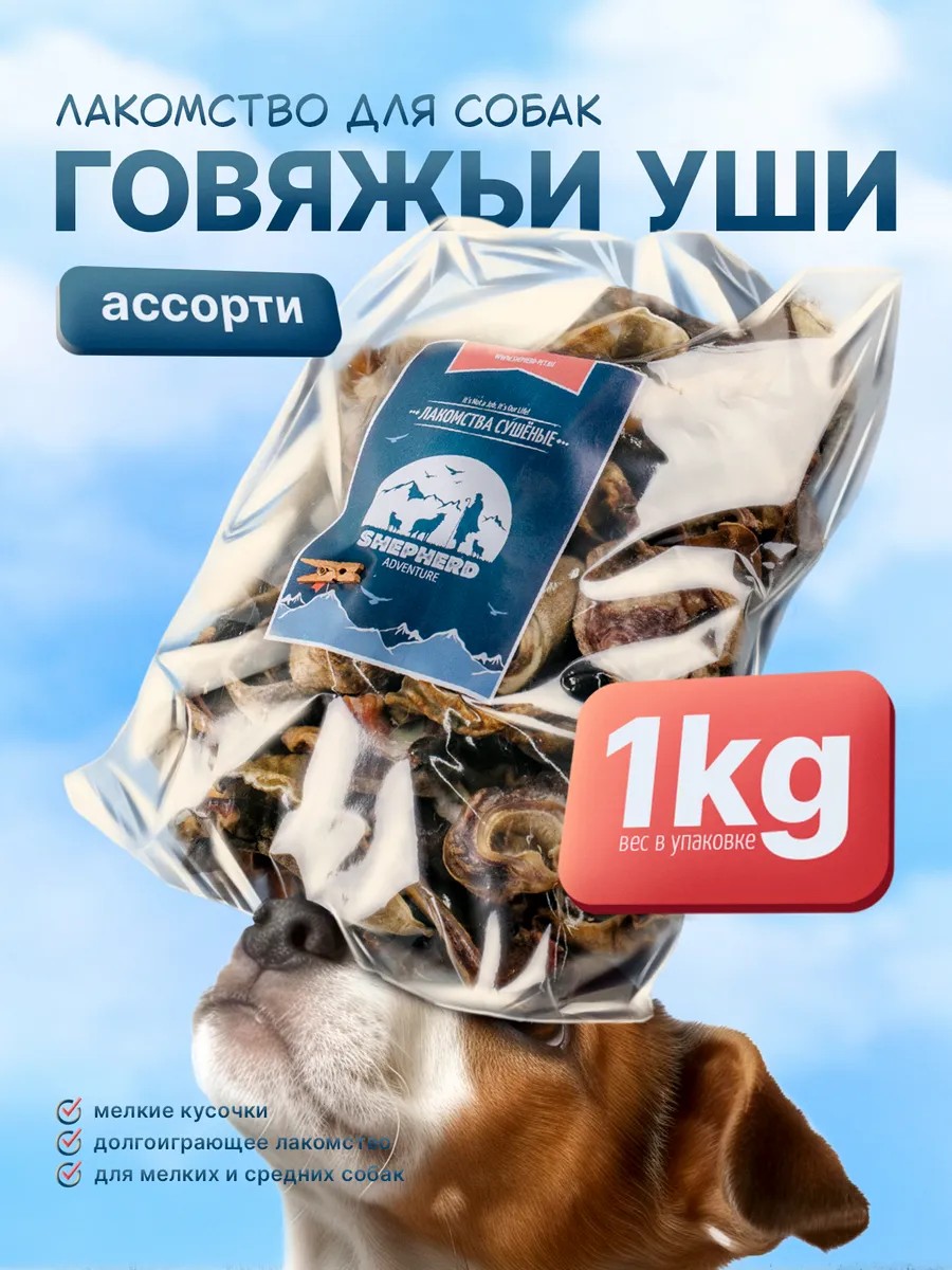 SHEPHERD TM Лакомство для собак Ухо Говяжье ассорти 1000г