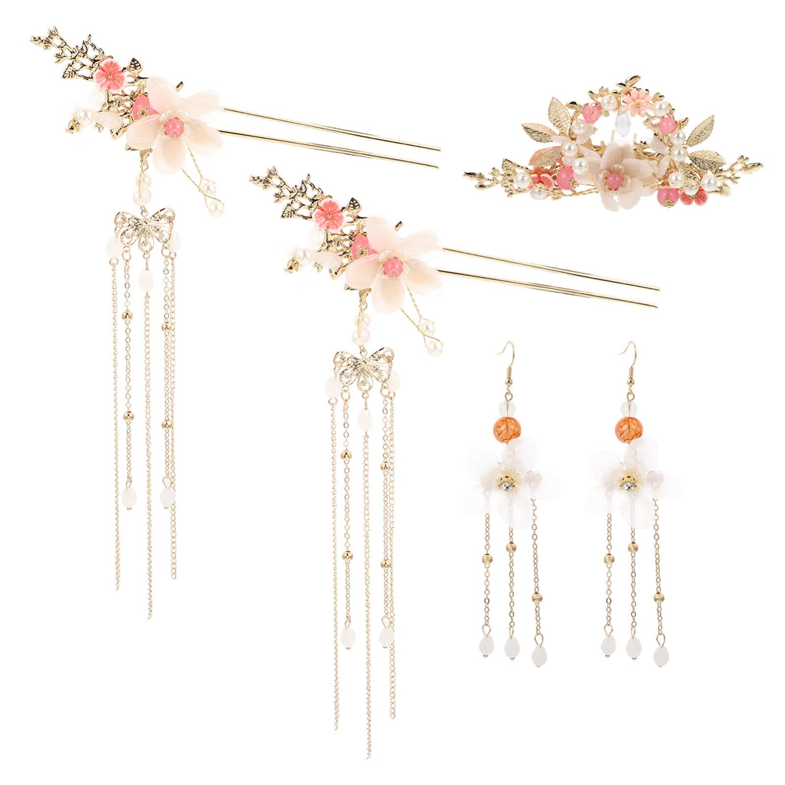 Description This is an ancient Chinese style flower headpiece set for girls. Made from materials and with a sophisticated look, they are the hair accessories for girls. They are and practical. The unique ancient design makes your girl stand out in the crowd. Features - Color: As Shown. - Material: Alloy. - Size: 11.00X6.00X5.00cm/4.32X2.36X1.97inch. Package Including 1 pair x hairpins, 1 x hair comb, 1 pair x earrings