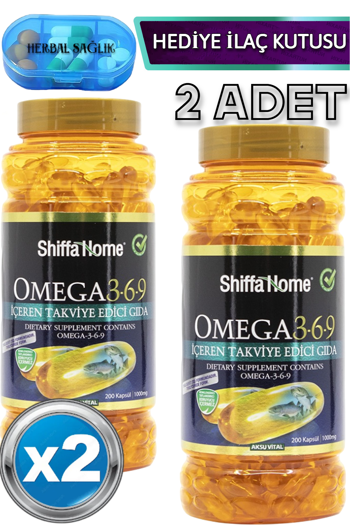 Shiffa Home 2 Pieces Omega 3-6-9 Fish Oil 200 Pieces Softgel