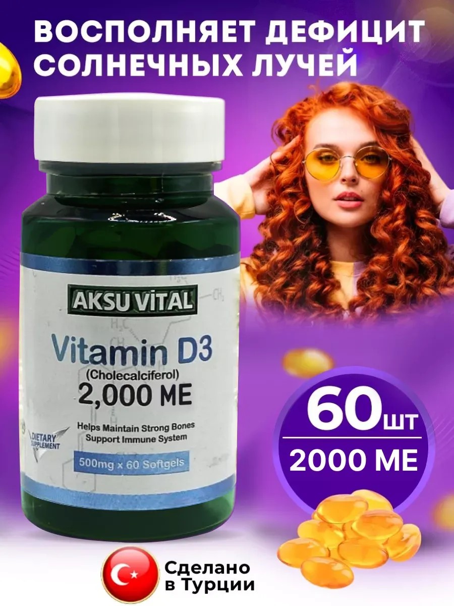 Витамин D3 очень важен для здоровья костей и мышц поскольку в зимние месяцы мы не получаем достаточное количество солнечного света,мы можем недополучать рекомендуемые ежедневно 10 микрограммов витамина D. В этот период и нужно использовать AKSU VITAL Витамин D3.