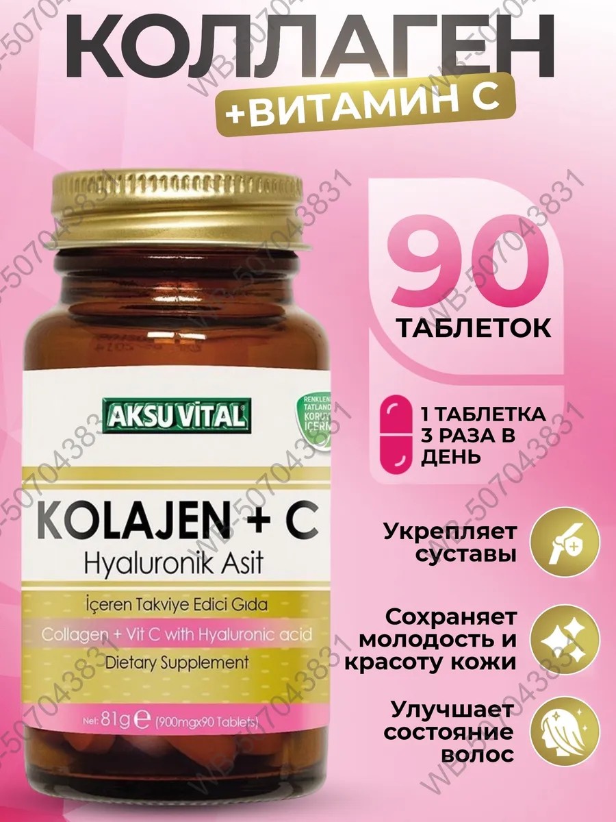 В таблетке axuvital Collagen также есть коллаген 1-го типа. Коллаген Aksu vital весит 200 дальтон