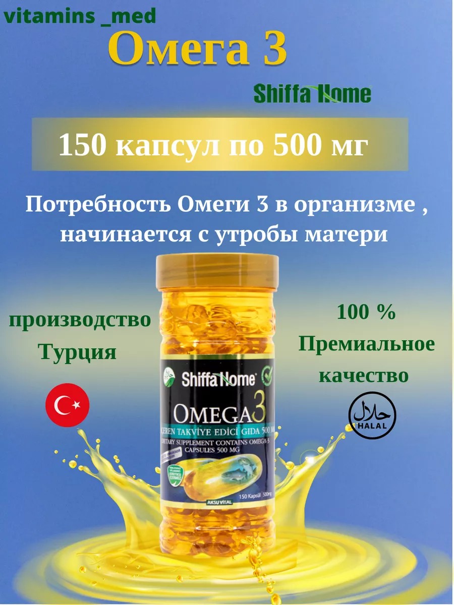 Омега 3 Витамины/Бады от Shiffa Home Турция Это бесценный источник здоровья. Универсальная добавка нового поколения от известного высокотехнологичного производителя препаратов - AKSU VITAL. Вы гарантировано получаете восококачественный и очищенный продукт. Уже с первых дней приема почувствуете как она работает, как ваше тело наполняется жизненной энергией и оптимизмом. Продукт позволяет каждый день получать даже при недостаточно разнообразном рационе необходимые вещества. Капсулы безопасны для здоровья, есть все необходимые сертификаты качества. Ограничений практически нет. Предупреждает развитие сердечно-сосудистых заболеваний, снижает количество холестерина в крови, уменьшает тромбообразование, препятствует возникновению и развитию аритмии. Снижает риск развития диабета. Назначается при лечении туберкулеза, анемии, куриной слепоты. Улучшает мозговую деятельность, а также насыщает организм витаминами A и D, благотворно влияет на состояние кожи, волос и ногтей. Обладает следующими преимуществами: 1) Главное - она действительно работает и вы это почувствуете с первых дней приема; 2) Лучшее соотношение цена=качество; 2) Экономичная фасовка 200 капсул позволяет пользоваться Омегой всей семьей; 3) Обладает сертификатом Халяль (Halal); 4) Форма производства -Tg(триглицериды) первозданная омега из рыбьего жира жирных пород рыбы. Данная форма обладает наибольшей биодоступностью для организма человека в сравнении с другими формами. Это - гарантия эффективности продукта; 5) Производитель обладает международными сертификатами: GMP Food, ISO9001, ISO22000. Последний сертификат гарантирует внедреную передовую лабораторную практику. Это - гарантия безопасности продукта; 6) В производстве используется сырье полученное ферментативной экстракцией при комнатной температуре, при таком подходе индекс TOTOX на выходе из производства Омеги ниже 5-10. (нормы ВОЗ по индексу TOTOX не более 26). Это - гарантия Качества продукта 7) Капсулирование в капсулы говяжьего желатина Халяль предотвращает окислительное воздействие кислорода и солнечных лучей и обеспечивает его стабильность. Это - гарантия сохранности продукта. При регулярном приеме капсул улучшается: - Общее состояние здоровья и тонус, вы наполняетесь жизненной энергией; - Когнитивные способности, концентрация внимания; - Зрение; - Укрепляются мышцы, связки и кости; - Хорошее настроение Вам обеспечено в любую погоду т.к. оно от состояния здоровья и самочувствия. Рекомендованная дозировка для взрослых 4 капсулы в день: по 2 капсулы 2 раз в день во время еды.