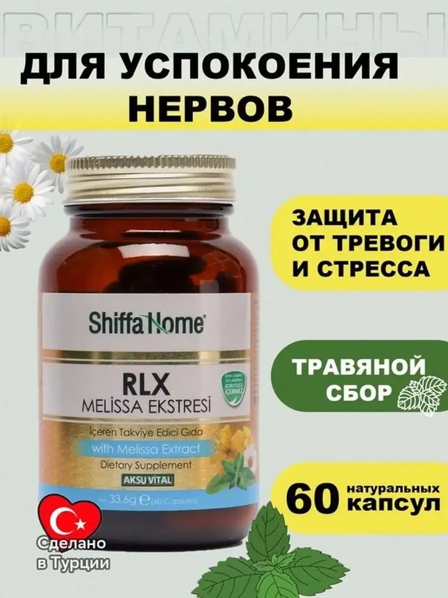 Успокоительное средство RLX от Турецкого бренда Shiffa Home. Hатуральный антидеприсант для мужчин и женщин, которое обладает мягким успокаивающим действием, повышает стрессоустойчивость, снимает повышенную раздражительность, улучшает настроение и сон. Витаминные комплексы RLX для взрослых это стредство от тревоги, нервов, стресса, депрессии. Турецкая валерьянка в таблетках - это натуральный антистресс являющийся лучшим успокоительным средством, который доступен без рецептов. Успокаивающие препараты на растительной основе также поддерживает иммунитет обладают седативным действием, которое нормализует здоровый сон, улучшает настроение, восстанавливает расстройства пищеварительной системы. Также нас ищут: препараты от стресса, успокаивающие таблетки от нервов, лучшие антидепрессанты, валерьянка в таблетках, капсулы от тревоги, средство от тревоги, таблетки от тревожности, успокаивающие препараты для нервной системы. Рекомендации по применению: Взрослым по 1 капсуле 3 раза в день до еды. Больше товаров в нашем магазине Istanbul Market