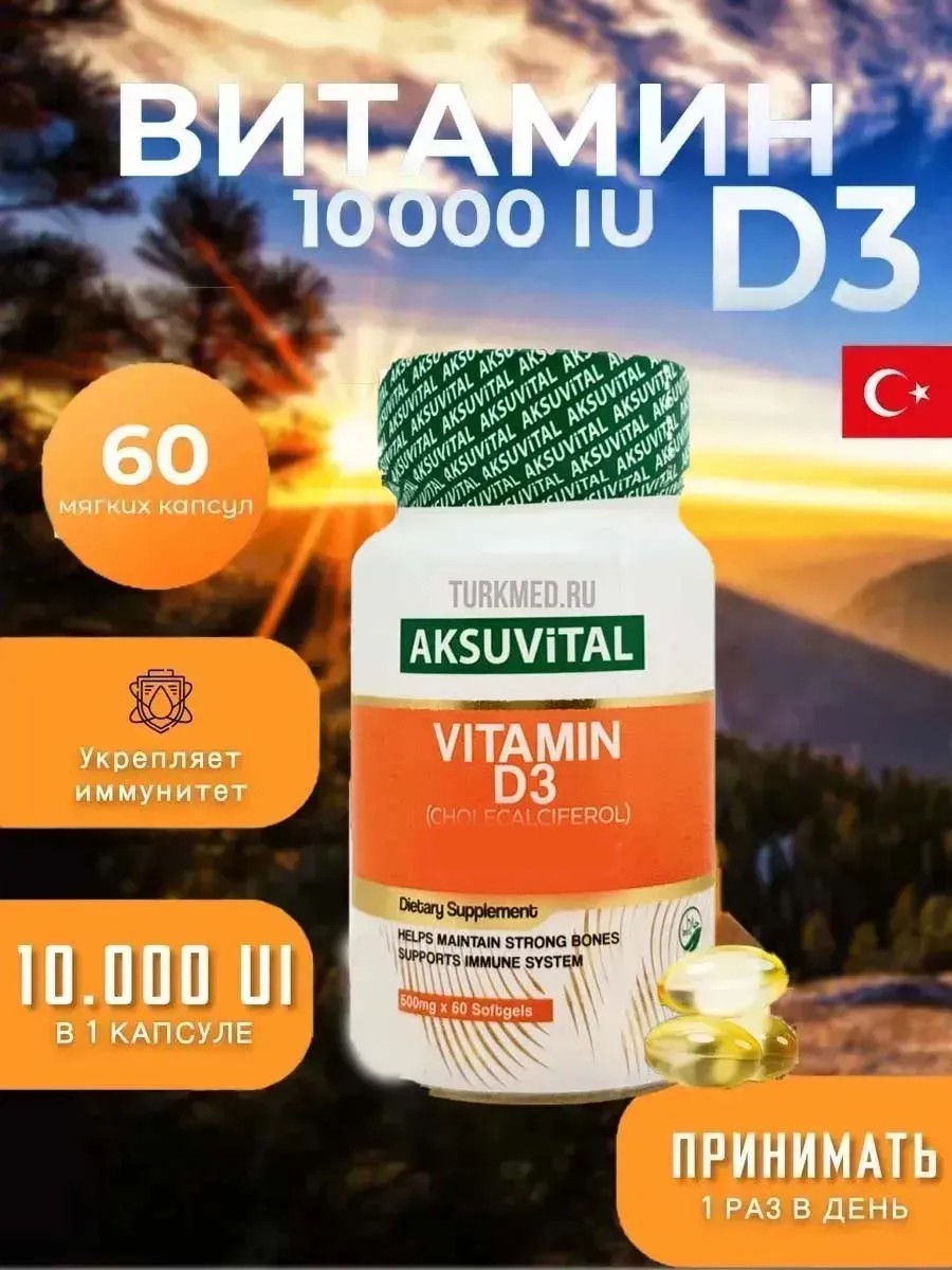 Поддержка иммунной системы: Витамин D3 помогает активировать иммунные клетки и повышает устойчивость организма к инфекциям и заболеваниям.