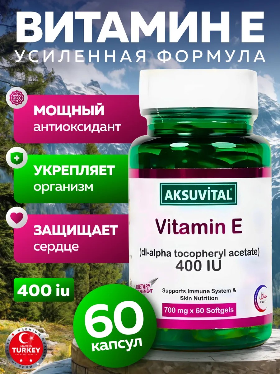 | Комплектация | Витамин E Aksuvital 60 капсул - 1 уп. |