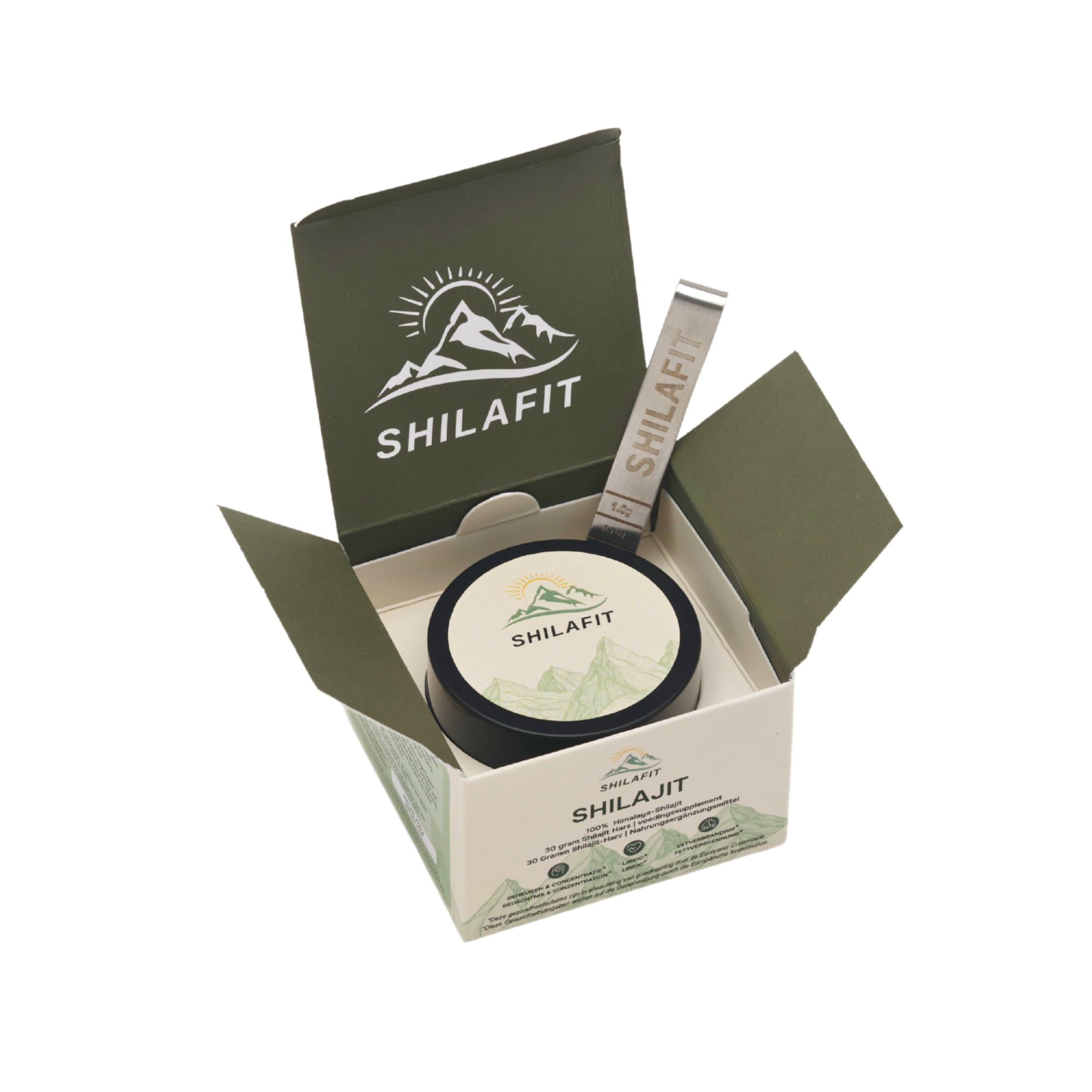 SUPPORTS MENTAL AND COGNITIVE FUNCTIONS -- Can help you stay clear and focused during your daily activities. MAY HELPS SUPPORT THE HEALTH OF THE URINARY TRACT AND REPRODUCTIVE ORGANS -- May contribute to maintaining a healthy and comfortable body. SUPPORTING THE METABOLISM OF SUGARS AND FATS -- Can help optimize your body's own processes for a balanced metabolism. HARVESTED FROM MORE THAN 2000 METERS IN THE KASHMIR HIMALAYA -- Offering you an authentic, natural product of the highest quality. 100 PURE HIMALAYA SHILAJIT WITH 83.5 FULVIC ACID -- Can support you in gaining natural energy and vitality in your daily routine.Shilajit Resin 100 Himalaya Shilajit 100 Biologisch 30 gram Shilajit Hars met 83,5 Fulvinezuur Inclusief MaatlepelONDERSTEUNT MENTALE EN COGNITIEVE FUNCTIES -- Kan u helpen om helder en gefocust te blijven tijdens uw dagelijkse activiteiten. HELPT MOGELIJK BIJ HET ONDERSTEUNEN VAN DE GEZONDHEID VAN DE URINEWEGEN EN VOORTPLANTINGSORGANEN -- Kan bijdragen aan het behoud van een gezond en comfortabel lichaam. ONDERSTEUNING VAN DE STOFWISSELING VAN SUIKERS EN VETTEN -- Kan helpen bij het optimaliseren van uw lichaamseigen processen voor een evenwichtig metabolisme. GEOOGST OP MEER DAN 2000 METER IN DE KASHMIR HIMALAYA -- Biedt u een authentiek, natuurlijk product van de hoogste kwaliteit. 100 PURE HIMALAYA SHILAJIT MET 83,5 FULVINEZUUR -- Kan u ondersteunen bij het verkrijgen van natuurlijke energie en vitaliteit in uw dagelijkse routine.