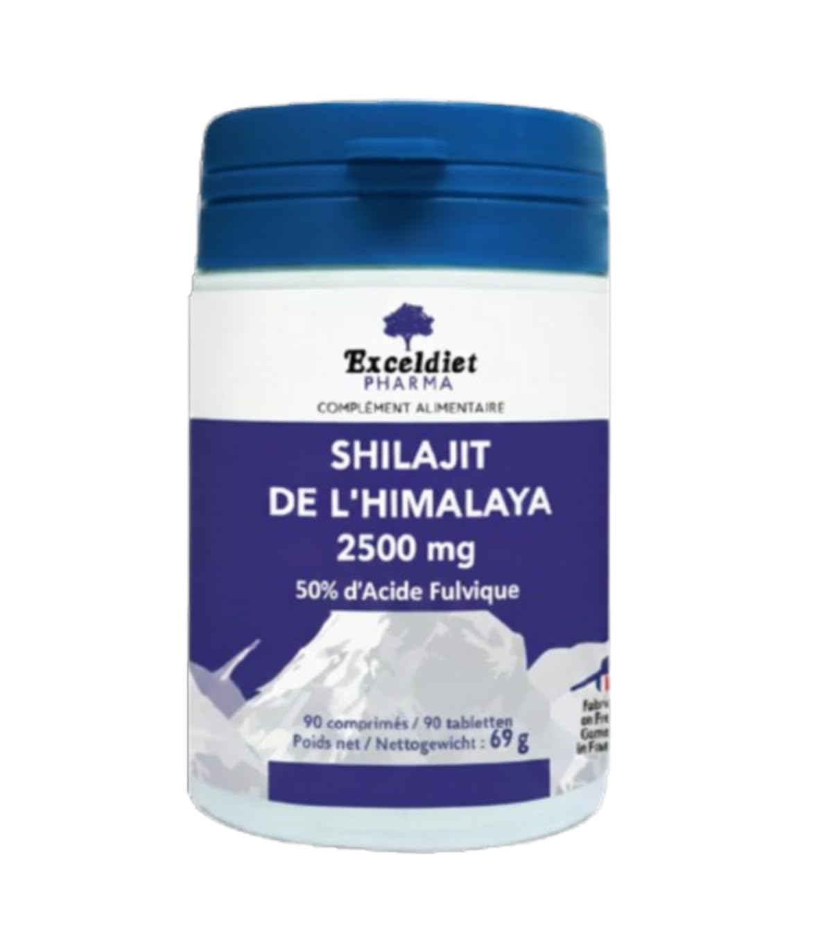 SHILAJIT 2500 mg Extrait 5:1 Titré à 50 en Acide Fulvique 90 Comprimés Vegan Performance Vitalité Cognition Résine pure de Shilajit 3 mois d'utilisation Fabriqué en France Exceldiet