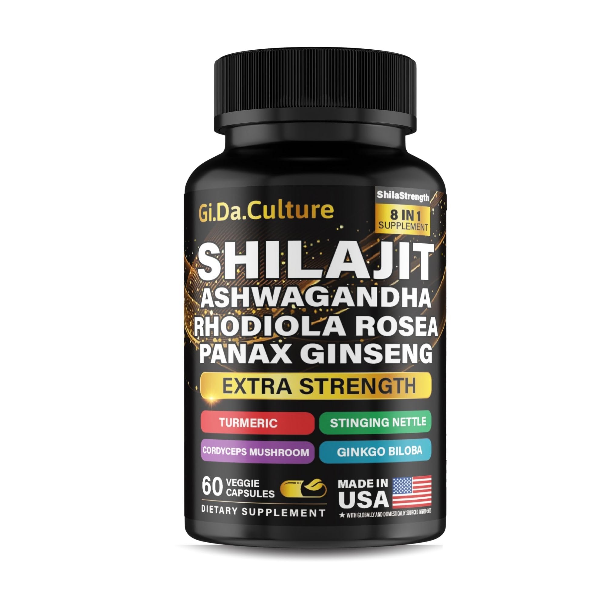 Crafted for Your Wellbeing – This product is thoughtfully designed to support your daily routine and contribute to overall balance. At Gi.Da.Culture, we are committed to delivering quality products made with natural ingredients to support your wellness journey. 8-in-1 Synergistic Blend – Our unique formula combines authentic Pure Shilajit and 8 other natural ingredients to provide a balanced solution for your wellness journey, supporting your daily needs for overall wellbeing. Superior Shilajit Capsules – A convenient and effective alternative to traditional Shilajit resin, Ashwagandha gummies, Turmeric powder, and other supplements. Perfectly designed for both men and women. Natural Shilajit Complex – Experience a carefully crafted blend of Pure Shilajit, Ashwagandha, Rhodiola Rosea, Panax Ginseng, and more, designed to complement your daily routine and support overall balance.