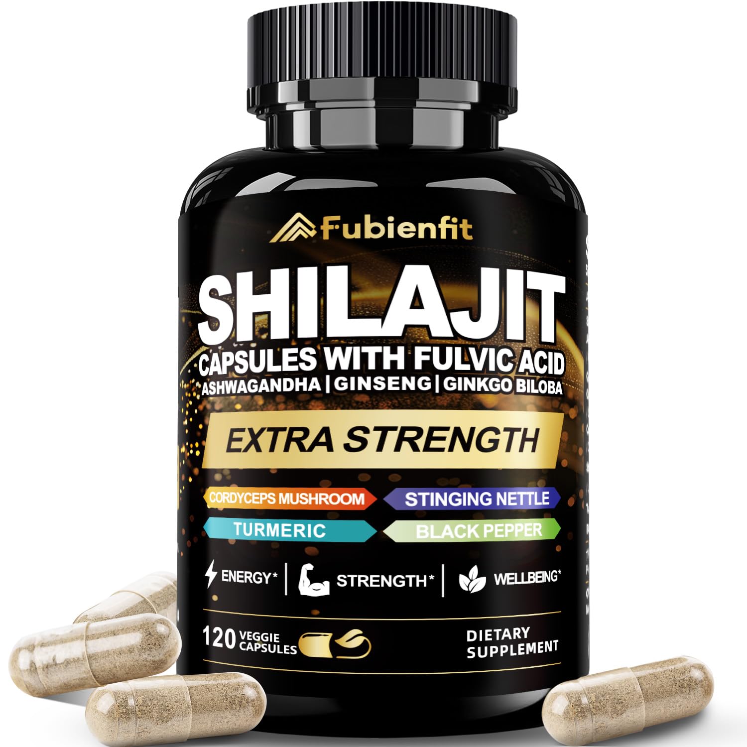 Fubienfit values your satisfaction: Our post-purchase service guarantees a seamless shopping experience. Contact our dedicated support team for any queries or concerns regarding our Shilajit Capsules. Convenient and Long-Lasting Supply: Each bottle contains 120 easy-to-swallow capsules, ensuring freshness and effectiveness. For best results, take 2 capsules daily with meals. Our Shilajit Capsules are highly absorbable, gluten-free, and non-GMO. Superior Absorption and Benefits: Unlike ordinary mineral supplements, our Shilajit Capsules feature 60 standardized fulvic acid, enhancing mineral absorption and overall health. Ideal for vegetarians, it delivers crucial nutrients for a balanced and vibrant lifestyle. Enhanced with Powerful Nutrients: Enriched with Fulvic Acid and Ashwagandha Root Extract, our Shilajit Capsules provide over 85 essential trace minerals. This superior blend offers unmatched performance, boosting energy levels and strengthening the immune system for your optimal health. Natural Himalayan Source: Sourced from the untouched heights of the Himalayas, at over 18,000 feet, our Shilajit Capsules encapsulate pure natural goodness. Our premium gold-grade Shilajit undergoes advanced nano-filtration, ensuring 300 milligrams per serving for peak potency and a smooth taste.