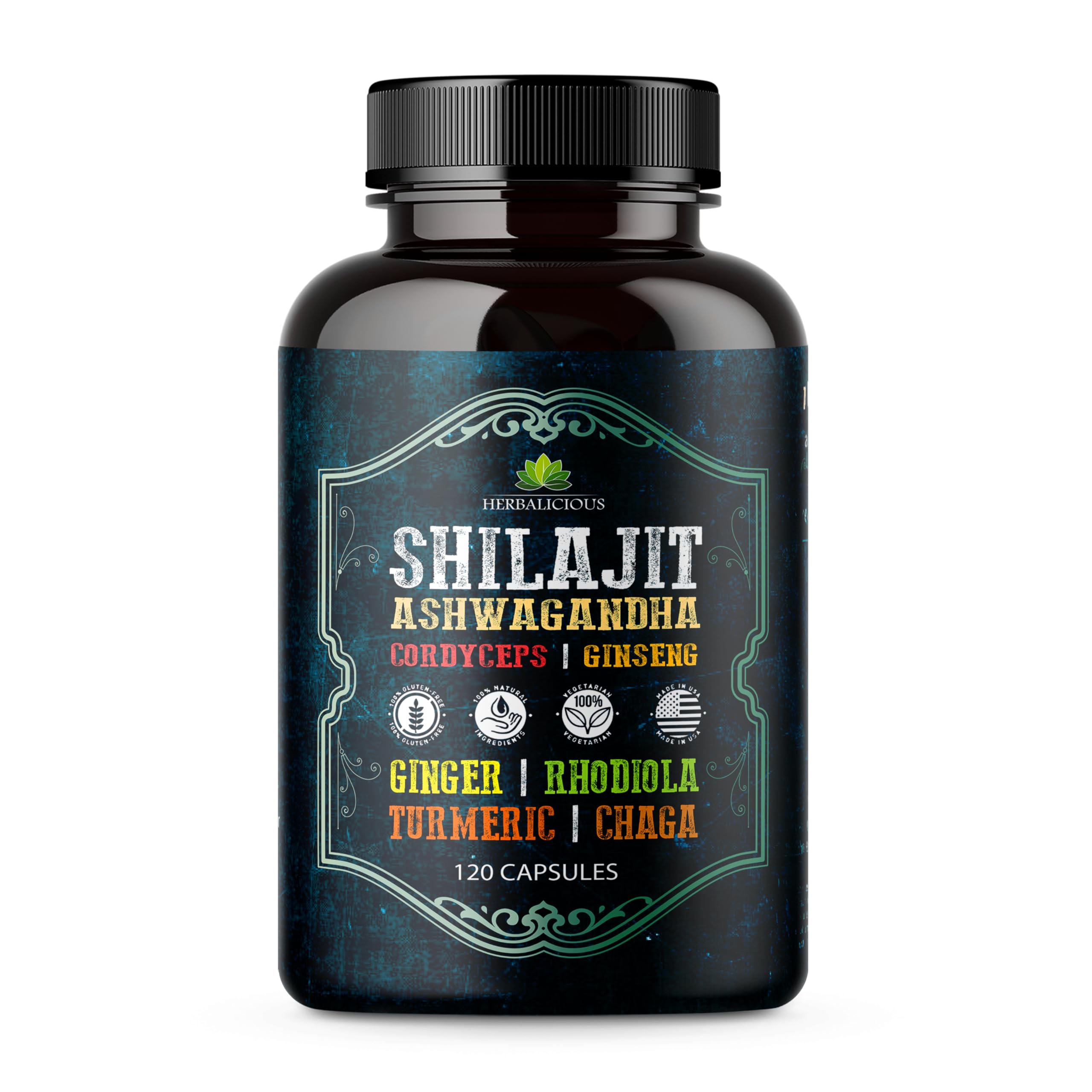 Made in the USA, Lab-Tested Quality: Manufactured in a GMP-certified, FDA-registered facility to ensure potency, purity, and safety. Clean, Vegan Non-GMO Formula: Made without gluten, soy, dairy, or artificial additives—just pure, plant-based ingredients. Immune Antioxidant Support: Chaga and Turmeric provide powerful antioxidant protection and help reduce inflammation to support long-term wellness. Mental Clarity Performance: Cordyceps and Ginseng support cognitive function, stamina, and endurance—ideal for an active male lifestyle. Natural Stress Support Cortisol Balance: Ashwagandha and Rhodiola help manage stress and promote calm, steady energy throughout the day. 8-in-1 Herbal Power Blend: Combines Shilajit, Ashwagandha, Cordyceps, Ginseng, Rhodiola, Turmeric, Chaga, and Ginger for full-spectrum stress relief, focus, and immune support. Shilajit for Men – Energy, Vitality Stamina: Specifically formulated to support male performance, energy, and hormonal balance with premium shilajit and synergistic adaptogens.