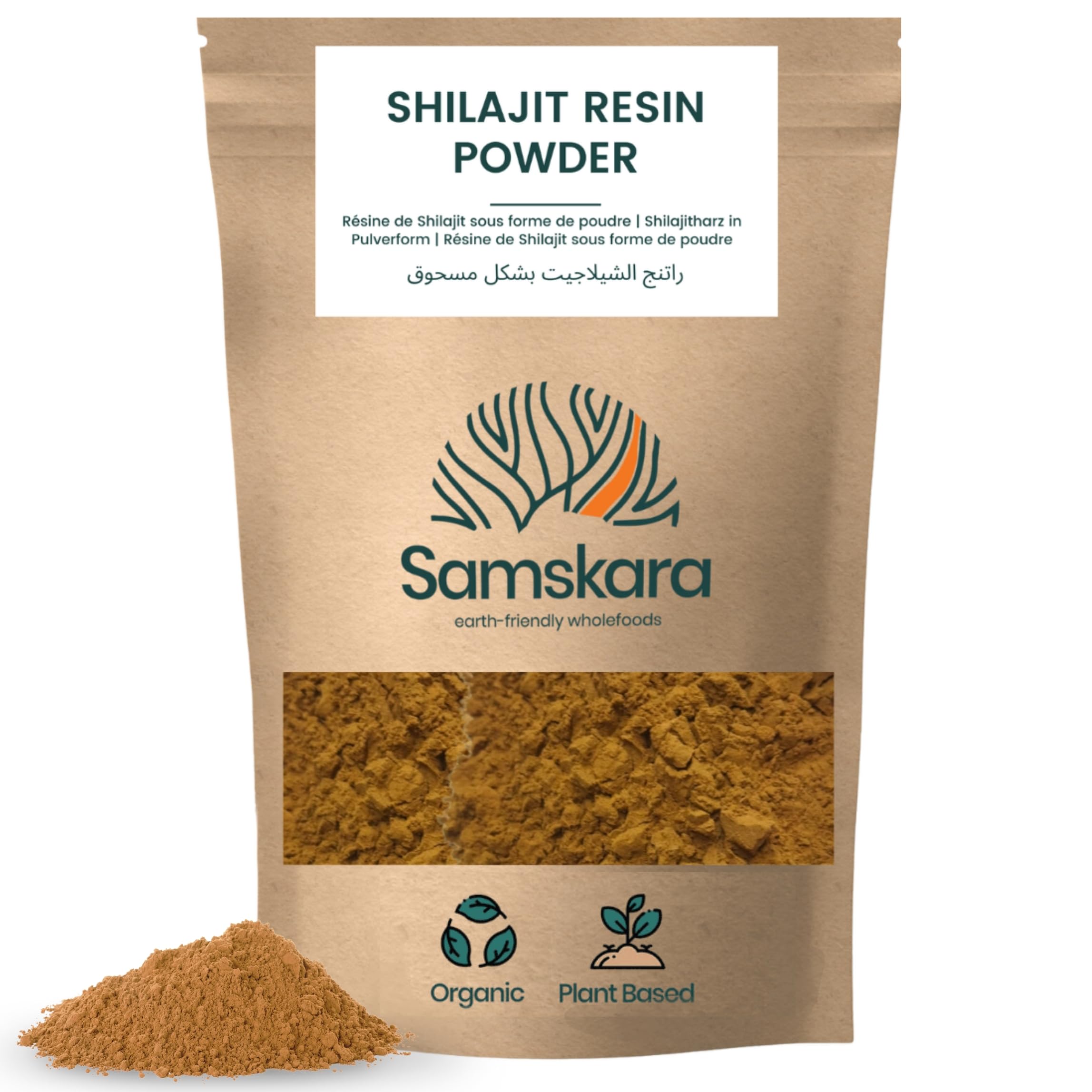 ECO-FRIENDLY PACKAGING: Packaged in a recyclable kraft paper bag with a zip closure for convenient storage and minimal environmental impact. store in a cool, dry place. EASY TO USE: Available in powder form, Samskara Shilajit can be easily mixed into energy drinks, smoothies, or shakes for a natural energy boost. ORGANIC, NON-GMO, AND 100 NATURAL: Premium quality product, free of sugar, chemicals, and additives. Suitable for vegan diets and recommended for everyone. RICH IN ESSENTIAL NUTRIENTS: Contains minerals, vitamins, and fulvic acid to support health, vitality, and immunity. Perfect for complete and lasting well-being. AUTHENTIC ORIGIN AND SUPERIOR QUALITY: Samskara Shilajit powder comes from the high-altitude regions of the Himalayas or the Altai Mountains. It is extracted using traditional methods, guaranteeing maximum quality and authenticity.