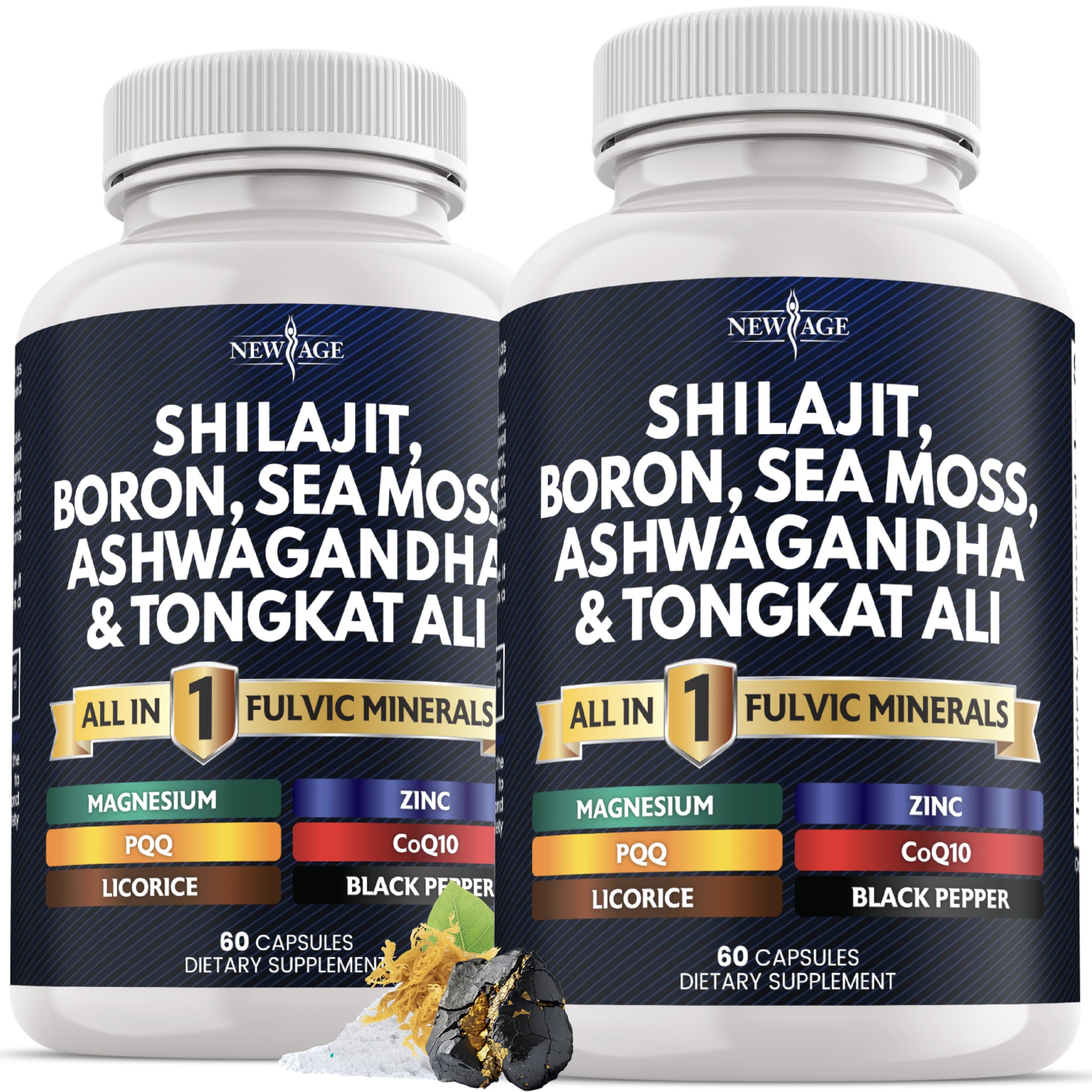 Shilajit Supplement with Sea Moss Ashwagandha Tongkat Ali Boron Magnesium - Fulvic Acid Capsules - 120 Count