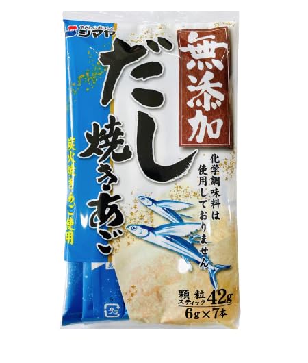 Perfect the base flavour in all of your Japanese cooking with Shimaya's mutenka yakiago dashi stock. This package contains 7 sachets (6g each) of dashi soup stock flavoured with yakiago fish rich in the umami flavours essential in most traditional Japanese foods. Use this dashi when making miso soups, noodle soups, oden hot pots, and more.Information and explanation in English French on the sticker. Product of Japan Net weight: 42g [6g per sachet x 7 sachets]. Store in a cool dry place away from direct sunlight. Allergy Advice: Contains Fish. 1 sachet (6g) with 1 litre water makes 4-5 servings of miso soup base. Once opened, consume as soon as possible.