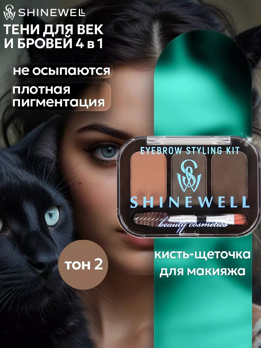 SHINEWELL Тени для век и бровей, палетка 02