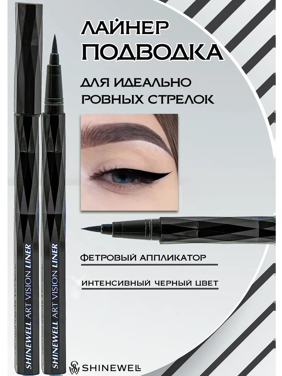Подводка для глаз черная с тонким аппликатором разработана для быстрого и аккуратного нанесения четких графических линий. Лайнер для глаз позволяет рисовать идеальные красивые стрелки любой толщины и стиля, гарантируя превосходный результат. Насыщенный цвет смотрится как татуаж. Гипоаллергенная водная основа подводки фломастера не раздражает слизистую. Пигмент маркера как гелевая текстура не растекается и не отпечатывается на веках, но хорошо смывается специальными средствами. Высыхание предотвращается специальным механизмом. Водостойкая подводка для стрелок – обязательный продукт для создания утонченного образа, входит в любой набор косметики для глаз и для бровей. Это достижимо как для дневного макияжа, так и для яркого вечернего мейкапа. Рисуйте фломастером для глаз тонкие стрелки для естественного гармоничного вида и визуального увеличения глаз, а широкими пользуйтесь как вечным оружием женской привлекательности. Загадочность и неотразимость вашему облику придадут стрелки, приподнятые к вискам. Их форму вы легко и точно сможете очертить нашим карандашом для век. Станьте скульптором своего образа! Стойкая жидкая подводка для глаз с фетровым наконечником удобна, чтобы точечно заполнить пространство меж ресниц. Подводку карандаш надо встряхнуть перед использованием. Большой объем – хватит надолго.