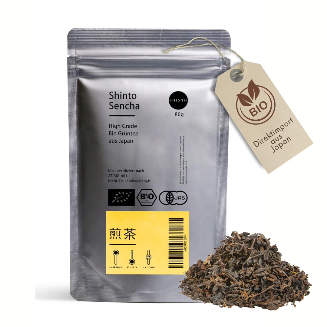 Shinto 80 g Bio Sencha tea High Grade JAS certified green tea from the first harvest Ichibancha Bio Sencha made with Jikagise Technology directly from Japan