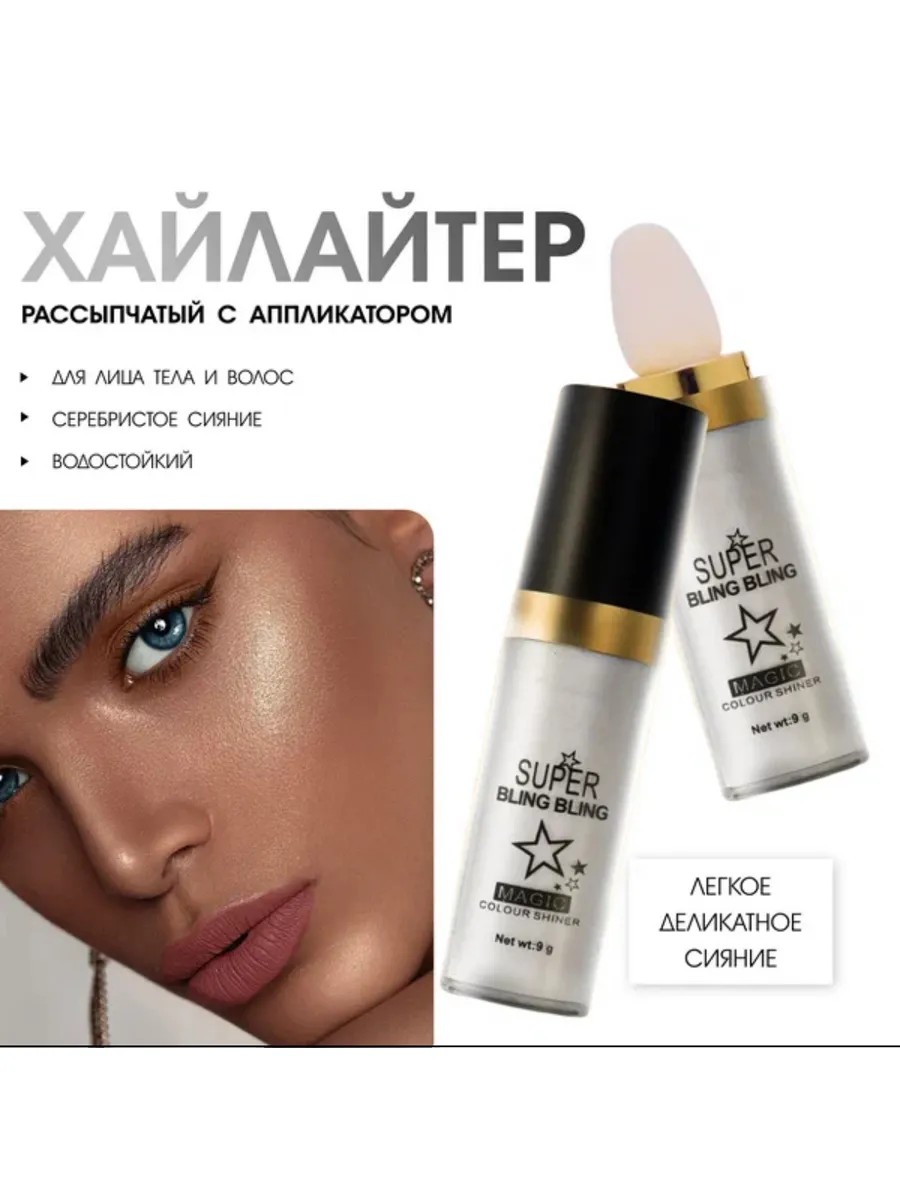 Хайлайтер для лица глаз контуринга и тела мерцающий глиттер блестки серебряный перламутровый. Прекрасный рассыпчатый стик подходит как сияющая база для мейкапа.