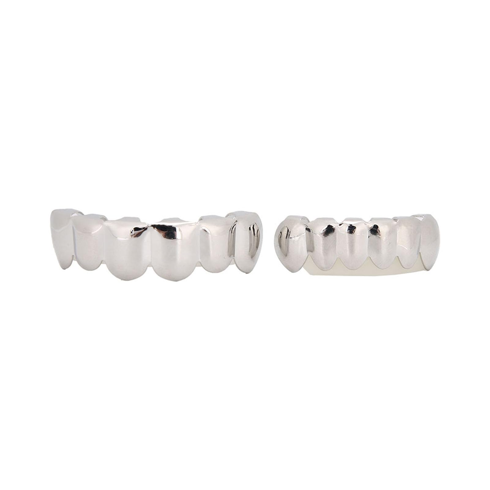 Shiny Teeth Hip Hop Brass Teeth Set for Halloween Party Gold Silver Rose Gold Black (Glossy silver suit (real gold plating))