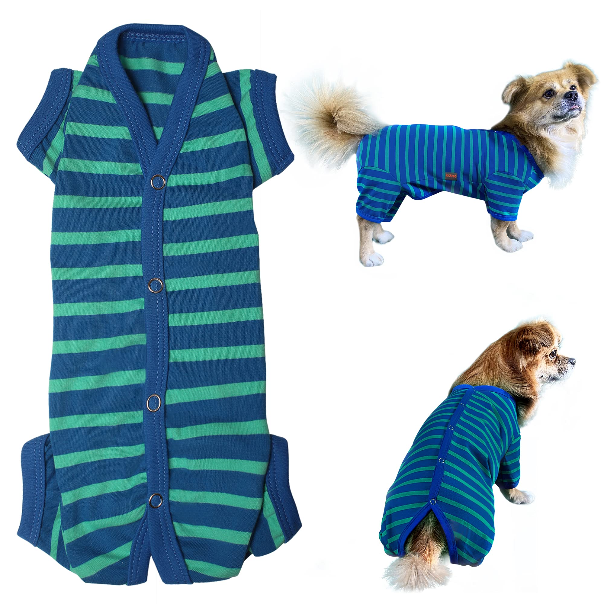 Dog pajamas dog clothes dog t-shirts clothing, striped pet dog onesia soft breathable dog 4 legs jumpsuits cozy bodysuits for small medium-sized dogs and cats, girls from kickred Please note the size table below and select the right size for your dogs. If your dog puppy is between the sizes, please select the larger size S: Breast circumference is 13 "" - 14"", back length is 10 "". Recommended weight of the dog 4.2 - 5.7 LBS (1.9kg -2.6kg). M: breast size is 15 "" - 16"", back length is 12 "". Recommended pet dog weight 5.5 - 8.8 lbs (2.5kg -4kg). L: Breast size is 16.5 "" - 18"", back length is 14 "". Recommended pet dog weight 8.8 - 12.1lbs (4kg -5.5kg). XL: Breast circumference is 19 '' - 20 "", back length is 13"". Recommended pet dog weight 12.1 - 14.3 lbs (5.5kg -6.5kg). Attention: 1-2cm difference due to the manual measurement Contact us directly if you have any problem! Packing list: 1 x pet pajamav 100 satisfaction guaranteePlease confirm your pet size before buying or contact us for some advice.We would like to exchange a new or full reimbursement if there are any quality problems or get an inappropriate size.v Tighten occasionPerfect for bedtime, tighten clothes, photos, etc. v More applicationsSuitable for more opportunity.Our dog suit for the operation relaxation and can solve your baby pet print.And our Tony Hoby Dogs Pyjamas can use to keep your pet warm when your pet stays in the air conditioning room and can help with fear.This pajama fits for many dogs such as poodle, bulldog, yorkshire, Chihuahua, Malteser, Cocker, Teddy, Pomeranian and many other puppies.v Unique designThere are four metal pressure buttons on the back of the clothing, beautiful and fashionable, simply put on and pull out.Four -foot design with an elastic waist and unique strip design, not easy to lose.These dogyjamas are designed for baby girls, abdominal protection design, keep dog baby warm.v Size MaterialXL: breast size is 19 "" - 20"", back length is 16 "". Recommended pet dog weight 12.1 - 14.3 lbs (5.5kg -6.5kg). Home T -shirts have no more.And perfectly made for dogs or cats. Dog shit suits can avoid skin diseases and scratches, offer the best protection for the skin of dogs and cats in all seasons.Hund Schlafanzug Hund Kleidung Hund T-Shirts Kleidung,Gestreifte Haustier Hund Onesie Weich Atmungsaktiv Hund 4 Beine Jumpsuits Gemütliche Bodysuits Für Kleine Mittlere Große Hunde Und Katzen,Mädchen von Kickred Bitte beachten Sie die untenstehende Größentabelle und wählen Sie die passende Größe für Ihre Hunde.Wenn Ihr Hundewelpe zwischen den Größen liegt,wählen Sie bitte die größere Größe S:Brustumfang ist 13"" - 14"",Rückenlänge ist 10"".Empfohlenes Gewicht des Hundes 4.2 - 5.7 lbs(1.9kg-2.6kg). M:Brustumfang ist 15"" - 16"",Rückenlänge ist 12"".Empfohlene Haustier Hund Gewicht 5.5 - 8.8 lbs(2.5KG-4kg). L:Brustumfang ist 16,5"" - 18"",Rückenlänge ist 14"".Empfohlen Pet Hund Gewicht 8.8 - 12.1lbs(4kg-5.5kg). XL:Brustumfang ist 19'' - 20"",Rückenlänge ist 13"".Empfohlene Haustier Hund Gewicht 12.1 - 14.3 lbs(5.5kg-6.5kg). Attention: Es wird 1-2cm Unterschied aufgrund der manuellen Messung Kontaktieren Sie uns direkt,wenn Sie irgendein Problem haben! Packliste: 1 x Haustier Pyjamav100 Zufriedenheits GarantieBitte bestätigen Sie Ihre Haustiergröße vor dem Kauf oder kontaktieren Sie uns für einige Ratschläge. Wir würden gerne ein neues umtauschen oder volle Rückerstattung, wenn es irgendwelche Qualitätsprobleme gibt oder eine unpassende Größe erhalten. vAnlässe zu AnziehenPerfekt für Schlafenszeit, tägliche Kleidung anziehen, Fotos usw. vMehre AnwendungenGeeignet für mehr Gelegenheit. Unser Hundeanzug für die Operation Erholung und kann Ihr Baby Haustier Druck zu lösen. Und unsere TONY HOBY Hunde Pyjamas können verwenden, um Ihr Haustier warm zu halten, wenn Ihr Haustier in der Klimaanlagenraum bleibt und kann mit Angst Entspannung zu helfen. Dieser Pyjama passt für viele Hunde wie Pudel, Bulldogge, Yorkshire, Chihuahua, Malteser, Cocker, Teddy, Pomeranian und viele andere Welpen. vEinzigartiges DesignEs gibt vier Metall-Druckknöpfe auf der Rückseite der Kleidung, schön und modisch, einfach an- und auszuziehen. Vierfüßiges Design mit elastischer Taille und einzigartigem Streifendesign, nicht leicht zu verlieren. Diese Hundeyjamas sind für Baby-Mädchen entworfen, Bauchschutz Design, halten Hundebaby warm. vGröße MaterialXL:Brustumfang ist 19"" - 20"",Rückenlänge ist 16"".Empfohlene Haustier Hund Gewicht 12.1 - 14.3 lbs(5.5kg-6.5kg).Haustier T-Shirts haben dehnbar.Es sind mit Baumwolle,Leichtgewicht und perfekt für Hunde oder Katzen gemacht.Hundeschlafanzüge können Hautkrankheiten und Kratzer vermeiden.Bieten den besten Schutz für die Haut von Hund und Katze in allen Jahreszeiten.Shirts für Hunde,Hundeschlafanzug mit Gestreiften und 4 Beinen Weich und Atmungsaktives Hund Tshirt Hunde Kleidung für Kleine Mittel Große Hunde von Kickred (Mädchen-Blau, XL) XL Dunkelblau Grün - Mädchen