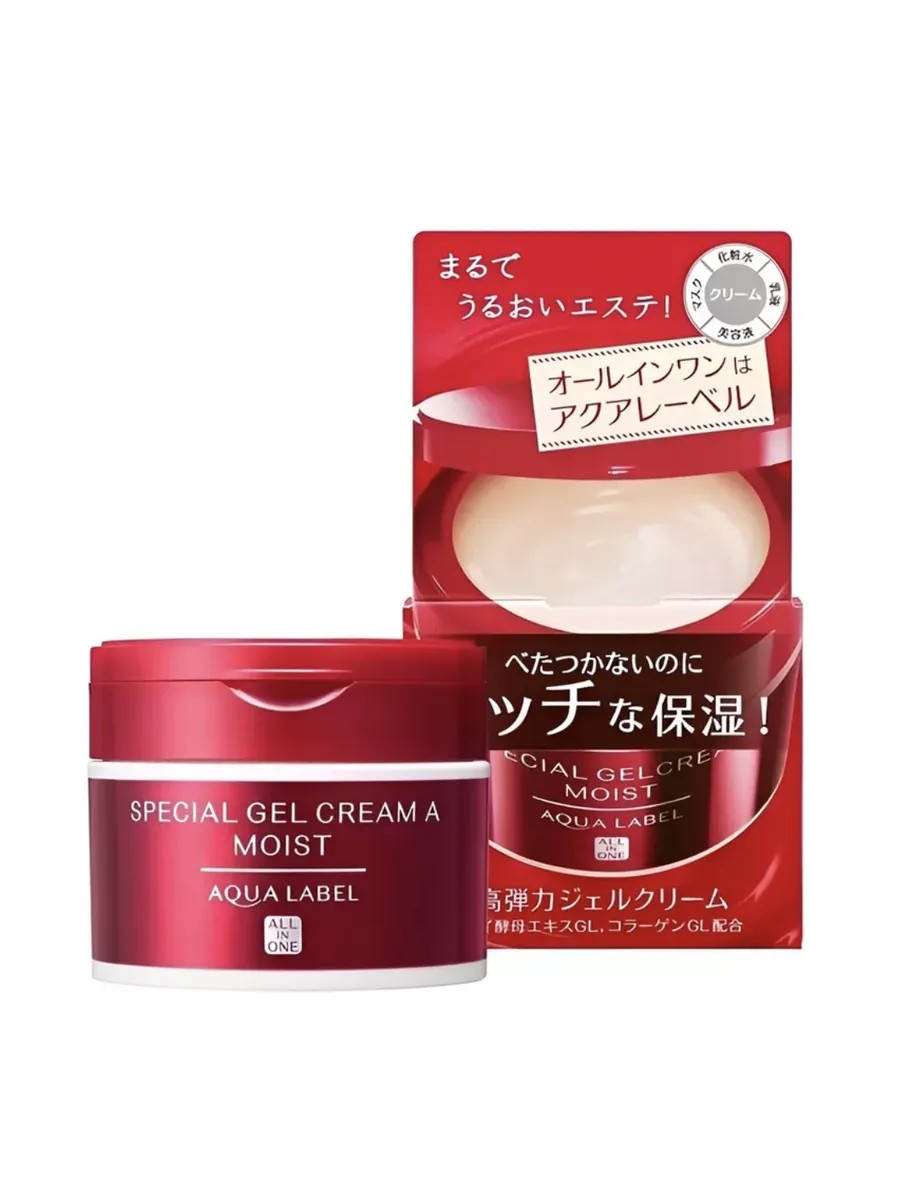 Aqualabel Special Gel Cream combines five facial skin care products: lotion, milk, essence, cream, and mask.