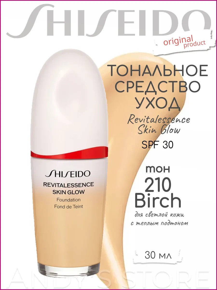 SHISEIDO Тональное средство-уход с эффектом сияния Revitalessence Skin Glow SPF 30, оттенок тон № 210 Birch, 30 мл.