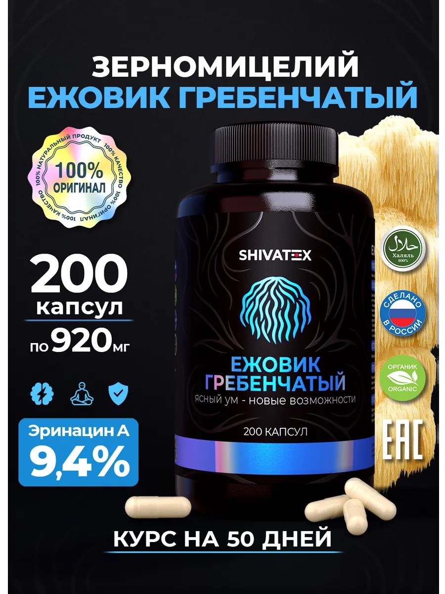 SHIVATEX Ежовик гребенчатый мицелий 200 капсул натуральный 'dfkfh