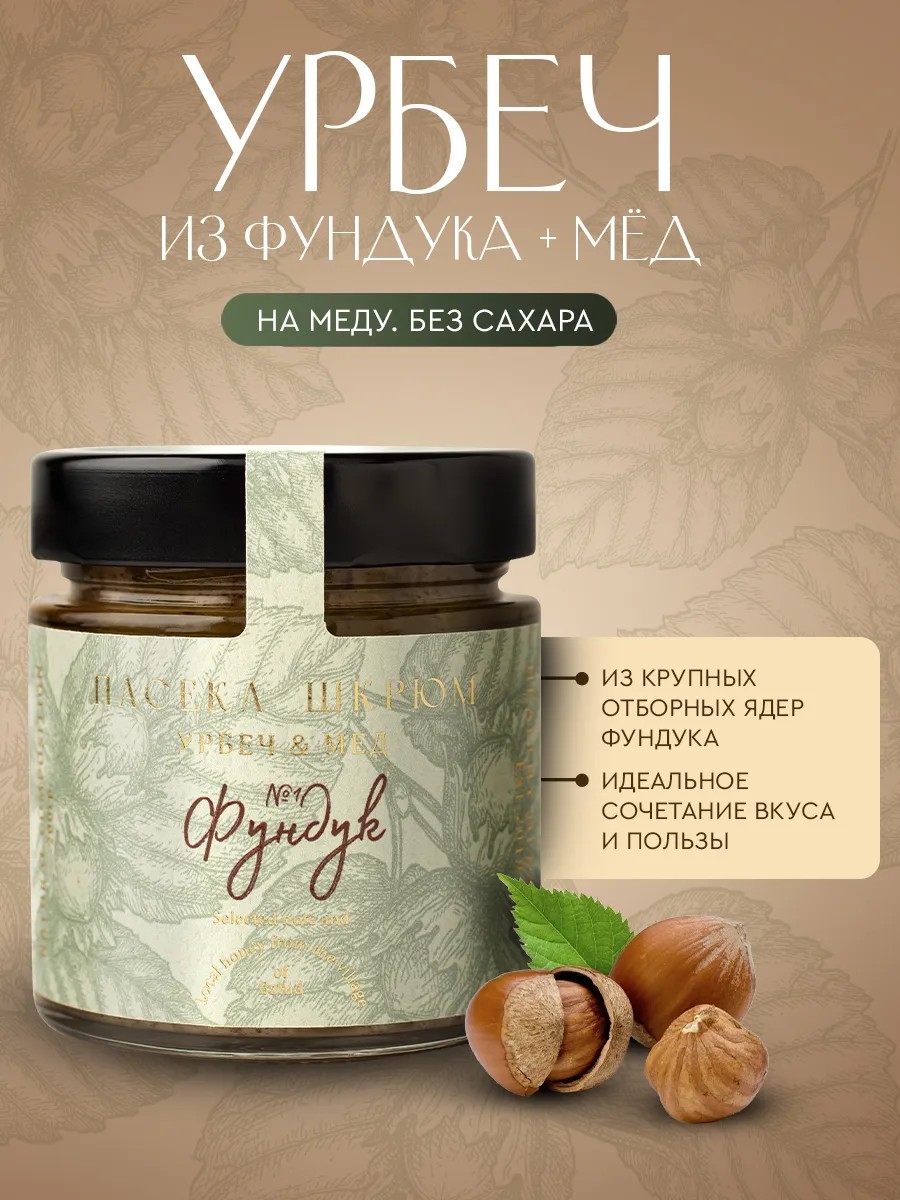 Урбеч из фундука на меду – это непревзойденное сочетание натуральных орехов и нежного медового вкуса. Этот продукт станет настоящим открытием для любителей оригинальных натуральных десертов. Чистый состав: только натуральный цветочный мёд и урбеч из фундука. Без сахара, без красителей и консервантов, без ГМО. Идеальный выбор для тех, кто хочет порадовать себя и близких вкусным и полезным подарком, а также для тех, кто заботится о своем здоровье и стремится к правильному питанию. Мы гордимся тем, что можем предложить Вам эту уникальную комбинацию вкуса и пользы для Вашего здоровья.