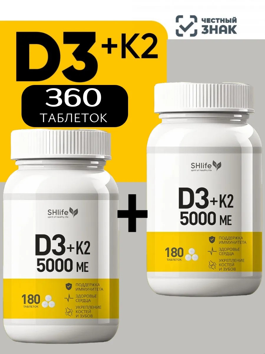SHlife Витамин Д3 К2 5000 МЕ 360 шт