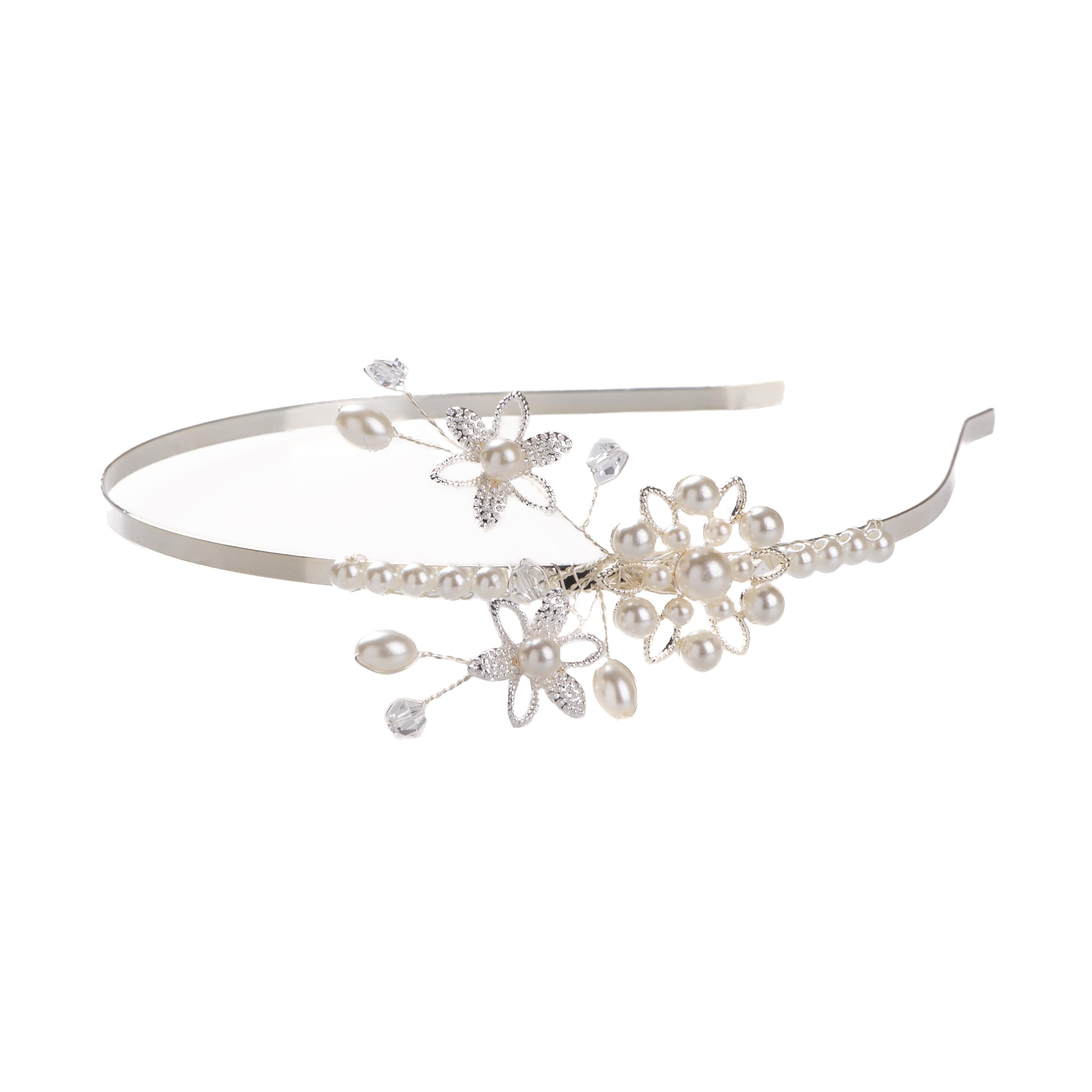 Shmily REINE HANDARBEIT Hochzeit Perle Strass Diadem Haarreif Haarschmuck Brautschmuck silber neu DH2007