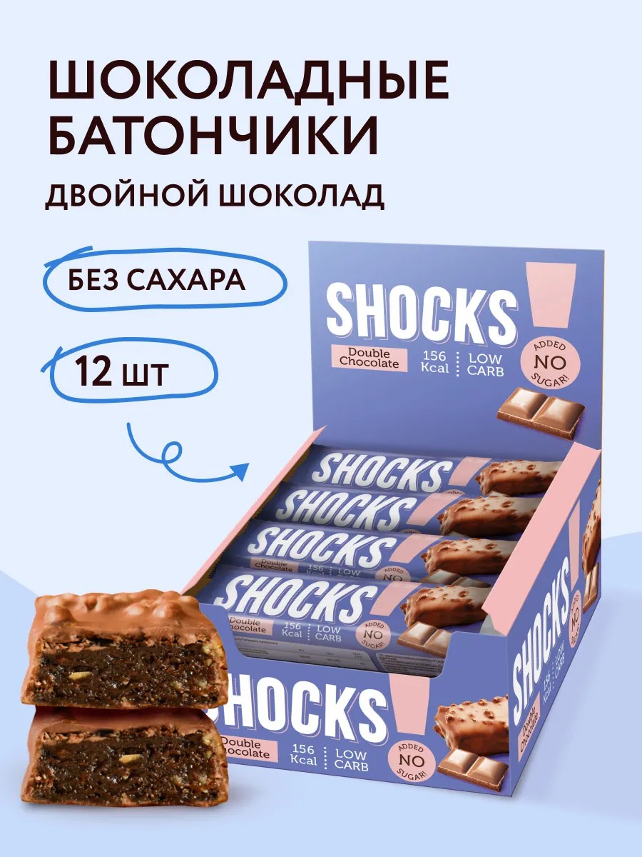 Вы не представляете свою жизнь без сладостей, но стремитесь есть поменьше сахара и всего вредного? Тогда новый батончик SHOCKS Шоколадный точно для вас. В нем нет сахара, трансжиров и прочих вредных добавок.