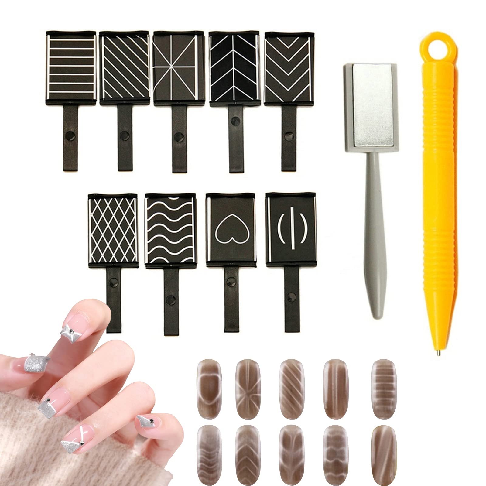 Shogpon 11 pieces of high-quality magnet stick magnet pencil set for perfect cat eyes effect DIY nail art tools use with 3D magnetic cat eye gel nail polish or powder