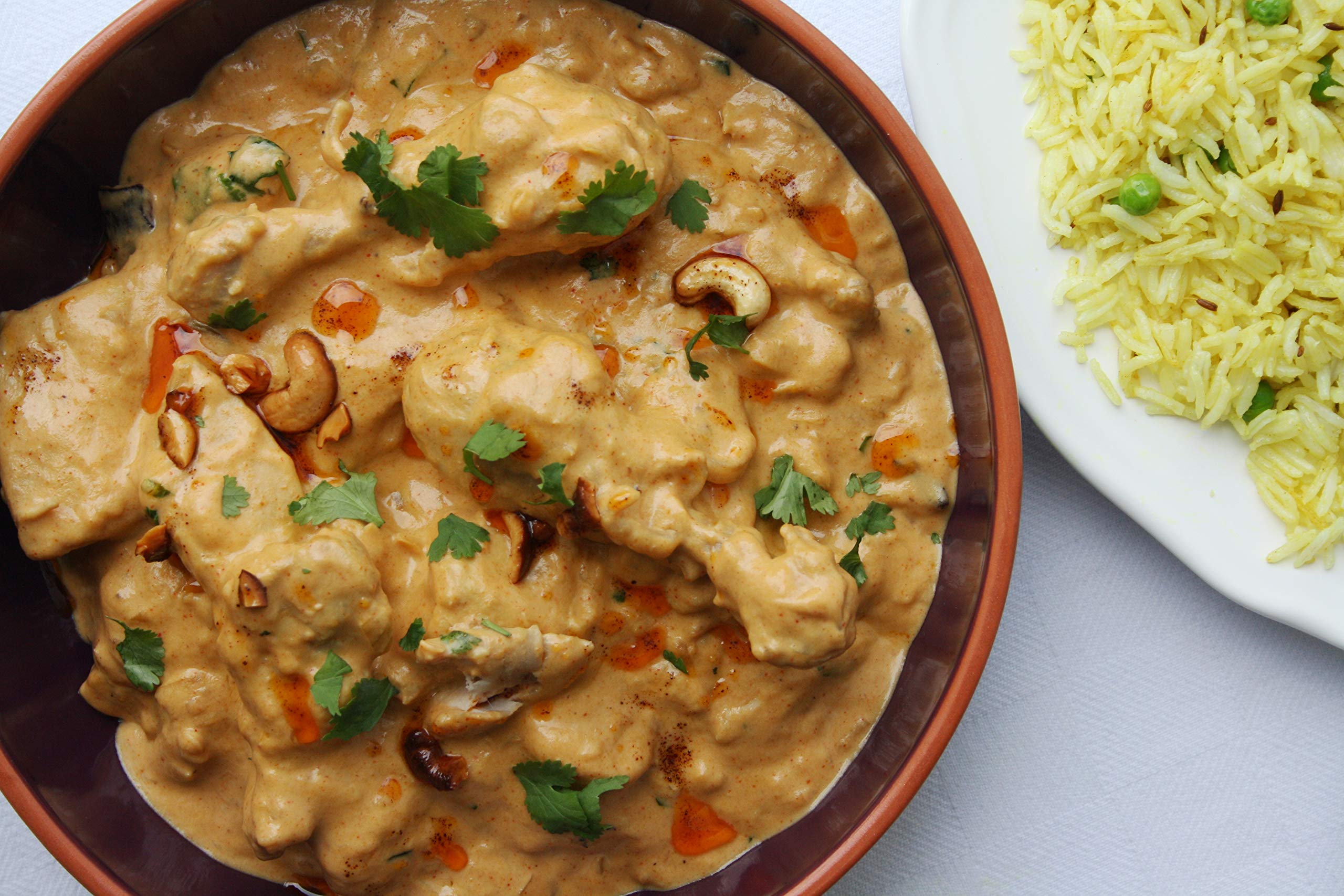 DESCRIPTION DU PRODUIT Ingrédients requis : poulet légumes 1 kg petites portions d'oignons 4 moyens 400 g de pâte d'ail finement coupée en dés 1 cuillère à soupe de pâte de gingembre 2 cuillères à soupe de piments verts 2 à 4 cuillères à soupe de jus de citron moulu, 4 cuillères à soupe de yaourt uni 1 tasse 200 g d'huile fouettée Ghee ½-1 tasse 180 ml Mélange de poulet légumes blanc Korma Mix 1 paquet. Recette : Étapes de cuisson : Mélangez ensemble la pâte de piment vert, la pâte à ail, la pâte de gingembre et le mélange Korma blanc au poulet légume. Appliquer sur le poulet légumes et laisser de côté pendant 30 à 45 minutes. Faites chauffer l'huile et faites frire les oignons jusqu'à ce qu'ils soient brun clair. Retirez les oignons de l'huile et moulez avec du yaourt. Tenir de côté. Dans la même huile, ajoutez du poulet ou des légumes marinés et remuez le frire pendant 4 à 5 minutes. Ajouter un mélange d'oignon et de yaourt. Faites cuire pendant 15 minutes ou jusqu'à ce que l'huile se sépare de la sauce. (Pour une sauce plus fine, ajoutez la moitié à une tasse de lait. Ajouter le jus de citron et retirer du feu. Garnir avec quelques amandes blanchies et pelées.