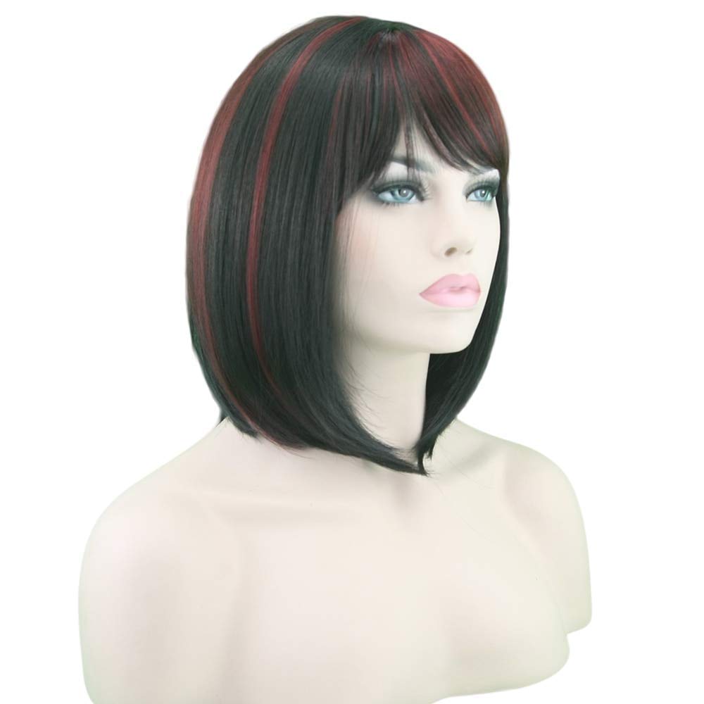 Short High Temperature Fiber Hair Wigs Synthetic Hair Heat Resistanto Wig Black Mix Red Straight Hair